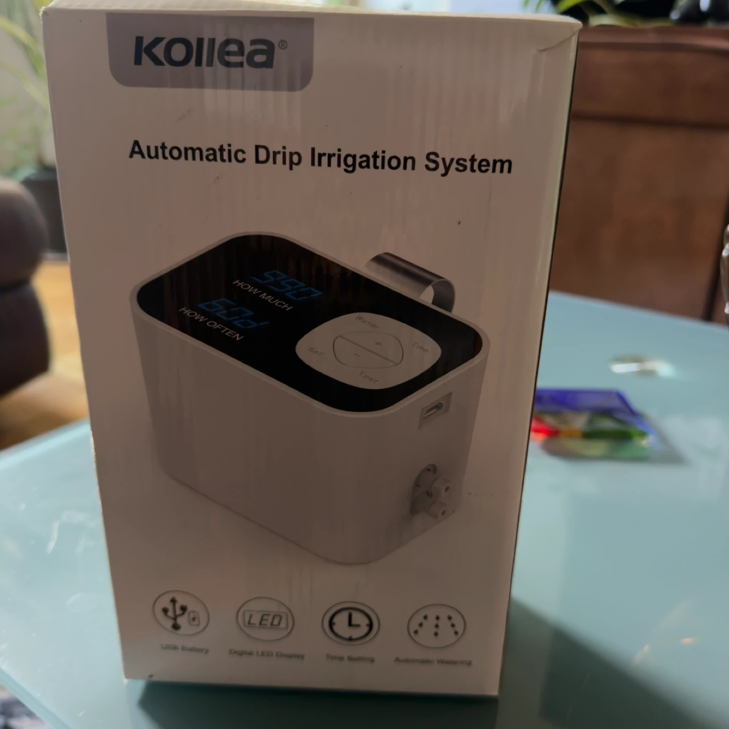 23Brand New…Selling a Kollea automatic drip irrigation system. It features a digital LED display and automatic watering. The model number is JH01. It uses an 18650 lithium battery with a battery capacity of 2000mAh and an input voltage of DC 5V. Perfect for keeping your plants watered!