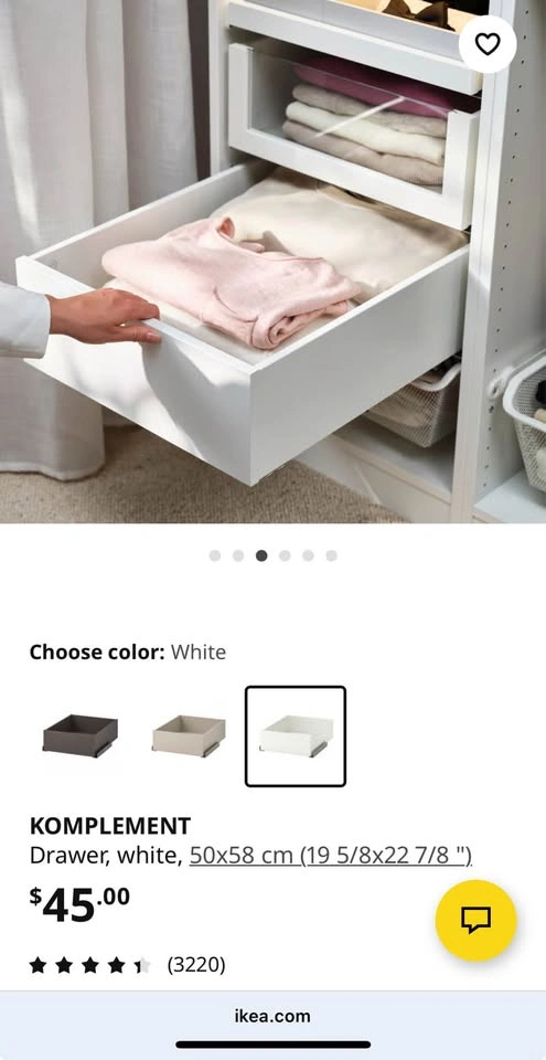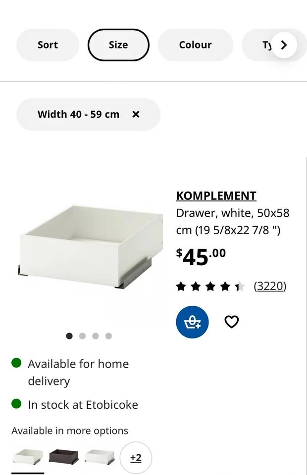 10KOMPLEMENT Drawer, white, 50x58 cm (19 5/8x22 7/8 ") and have same size drawer with glass front . Perfect for folded clothes or accessories, giving your PAX wardrobe a neat, minimalist look. Main intersection is Queensway/Cawthraw. Please call Javed at (647) 291-7040