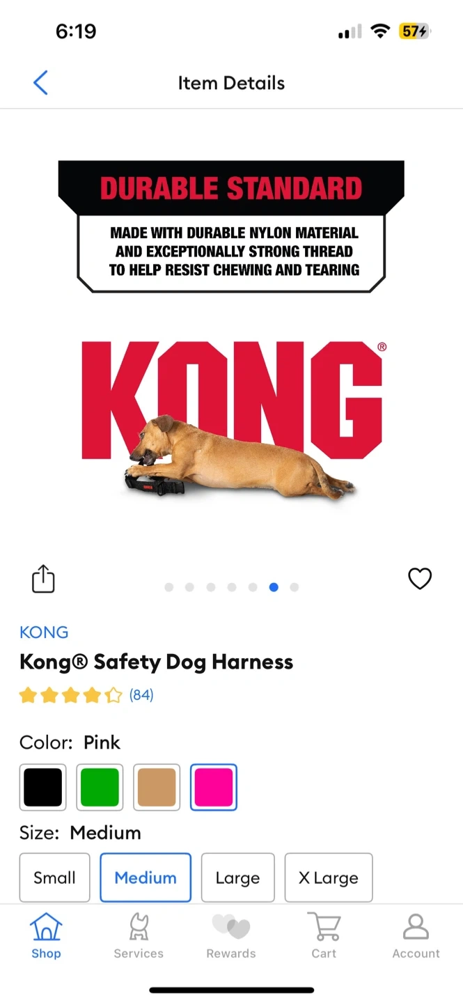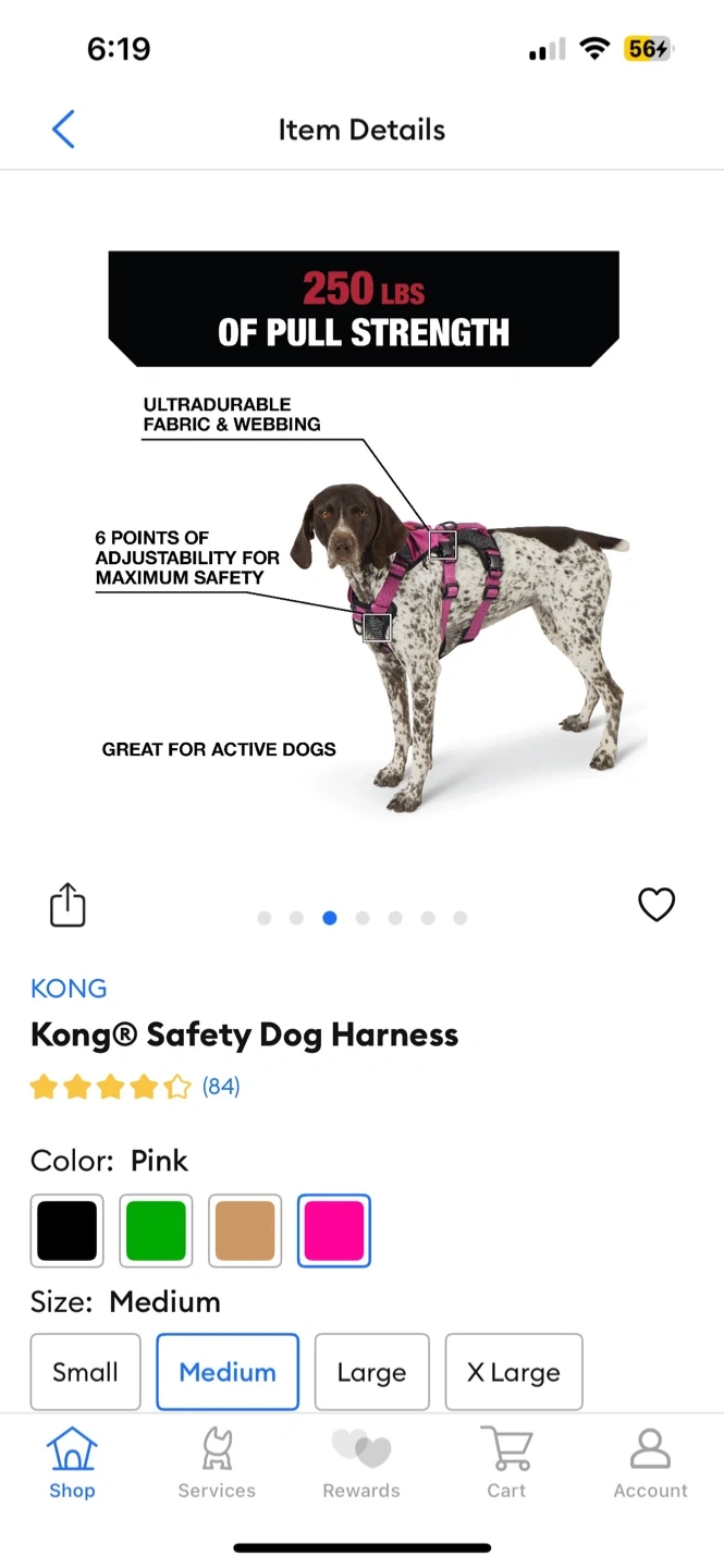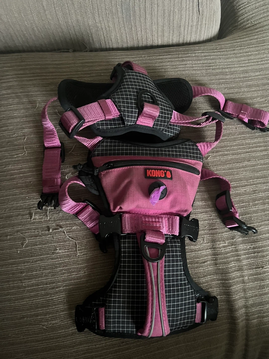 10Selling a Kong Safety Dog Harness in size medium! It's pink and black and in great condition. This harness is designed for a good fit, with adjustable straps for maximum safety and comfort. It's made with ultra-durable fabric and webbing, and it's great for active dogs!