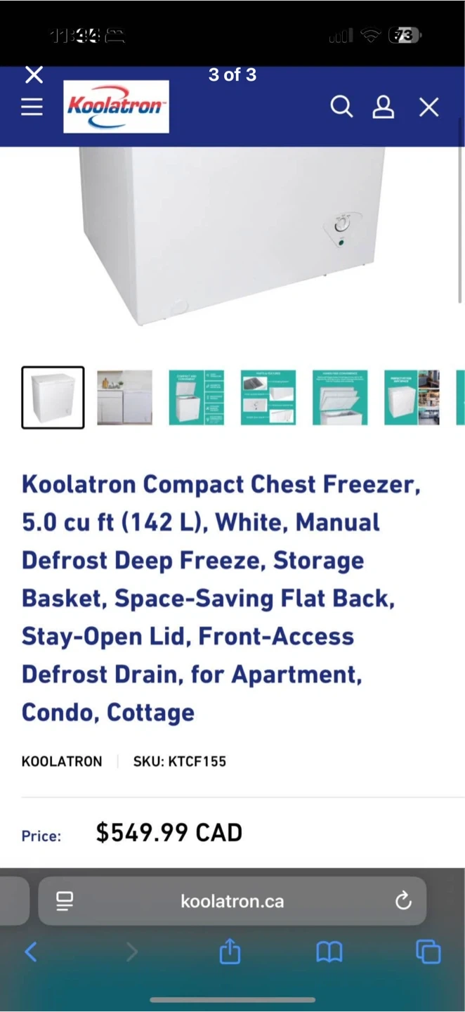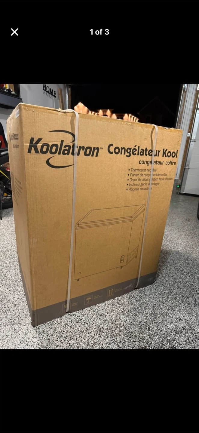 10Selling a Koolatron Compact Chest Freezer, brand new in box! It's a 5.0 cu ft (142 L) white chest freezer with manual defrost. It also features a storage basket, space-saving flat back, stay-open lid, and a front-access defrost drain, perfect for apartments, condos, and cottages. Originally bought for $549.99 CAD