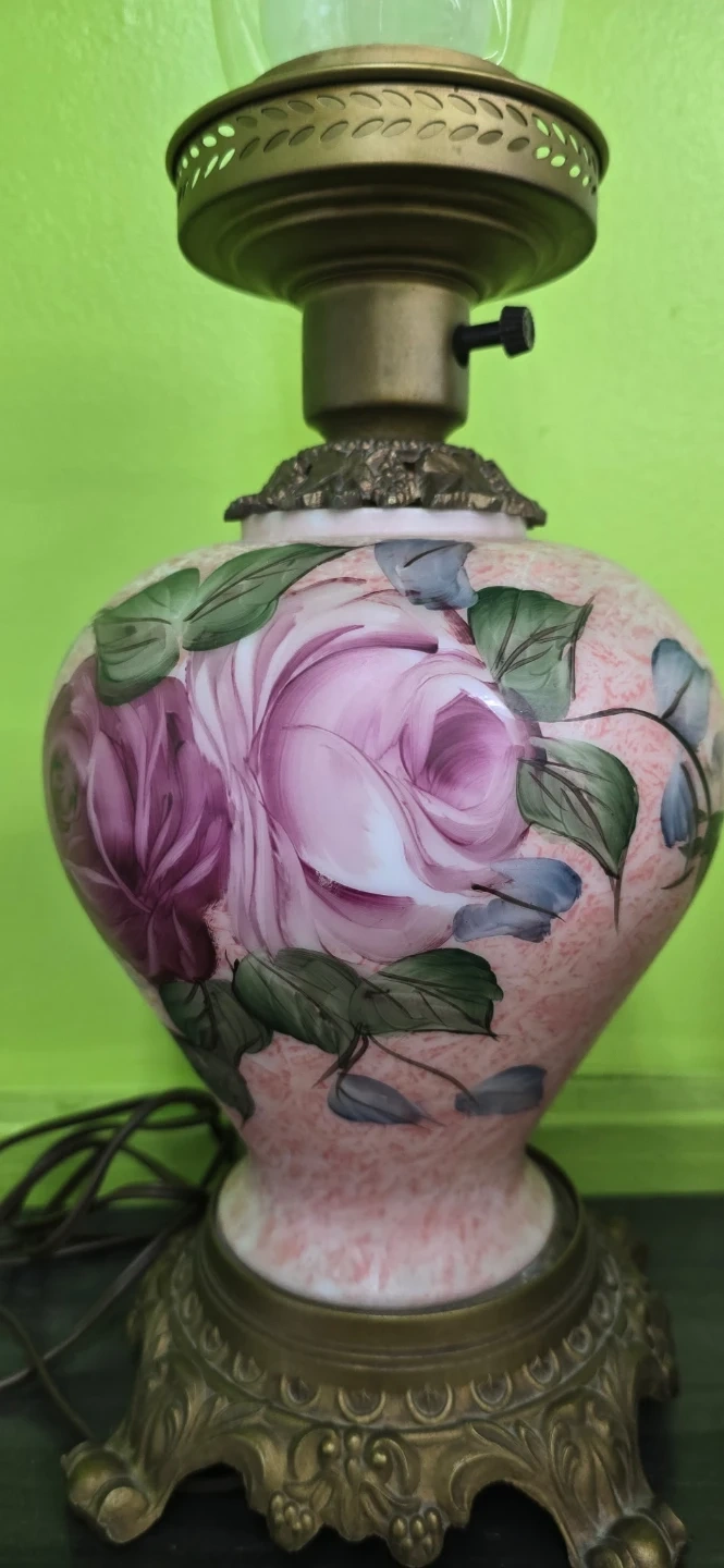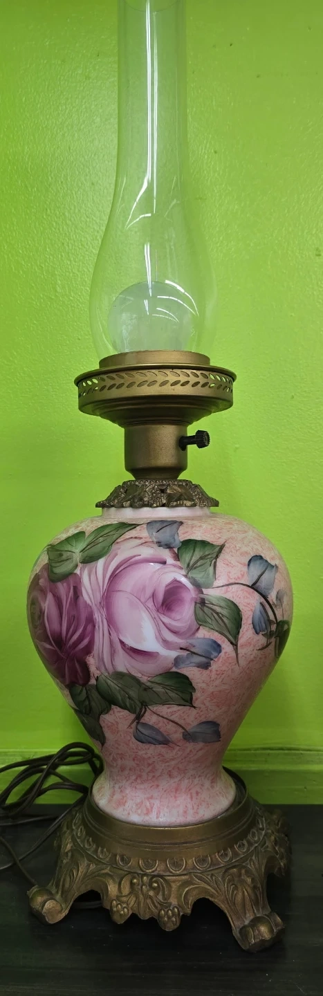 🌹 Vintage Floral Oil Lamp Style Electric Lamp – $47