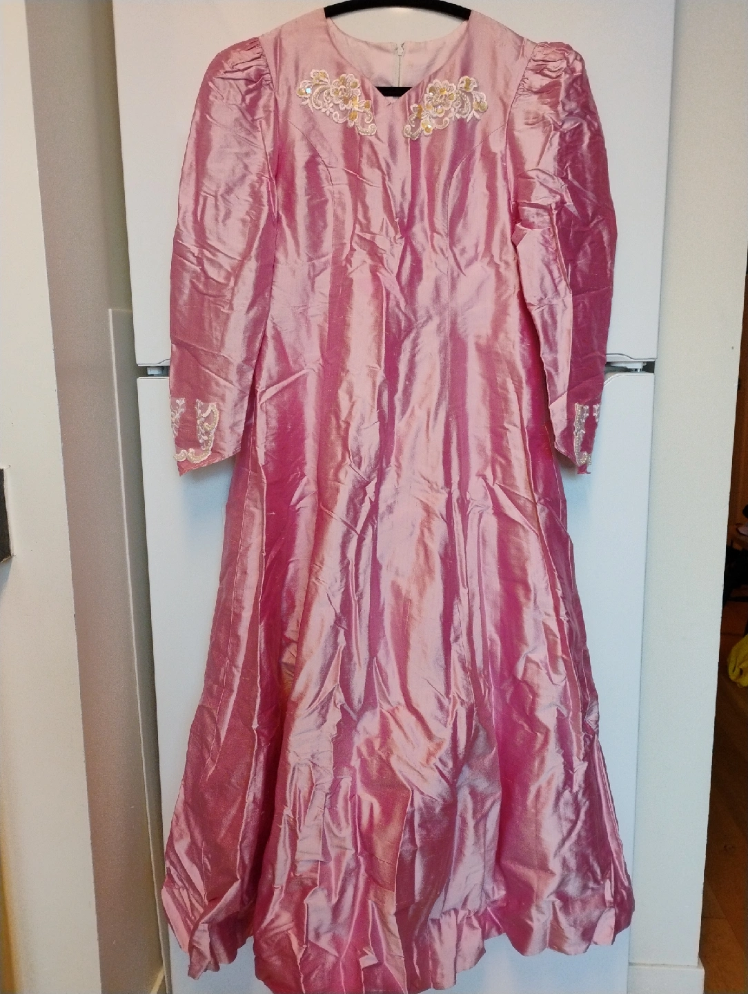 82Beautiful pink dress with pearl and floral embellishments! Matching undergarment slip included.