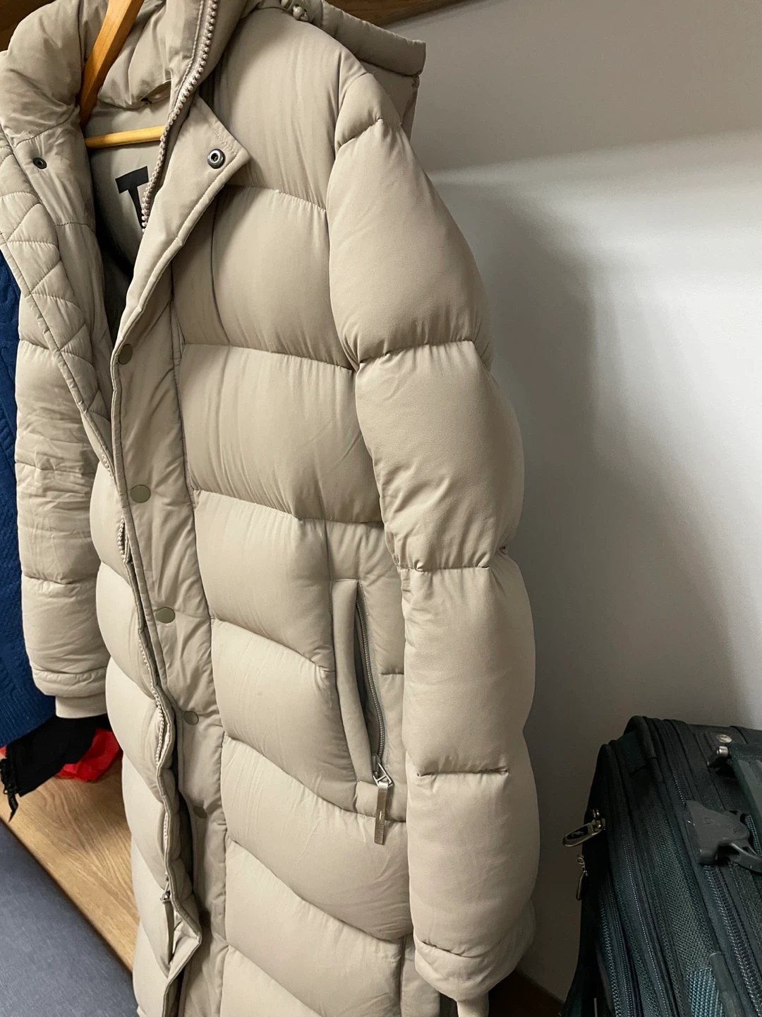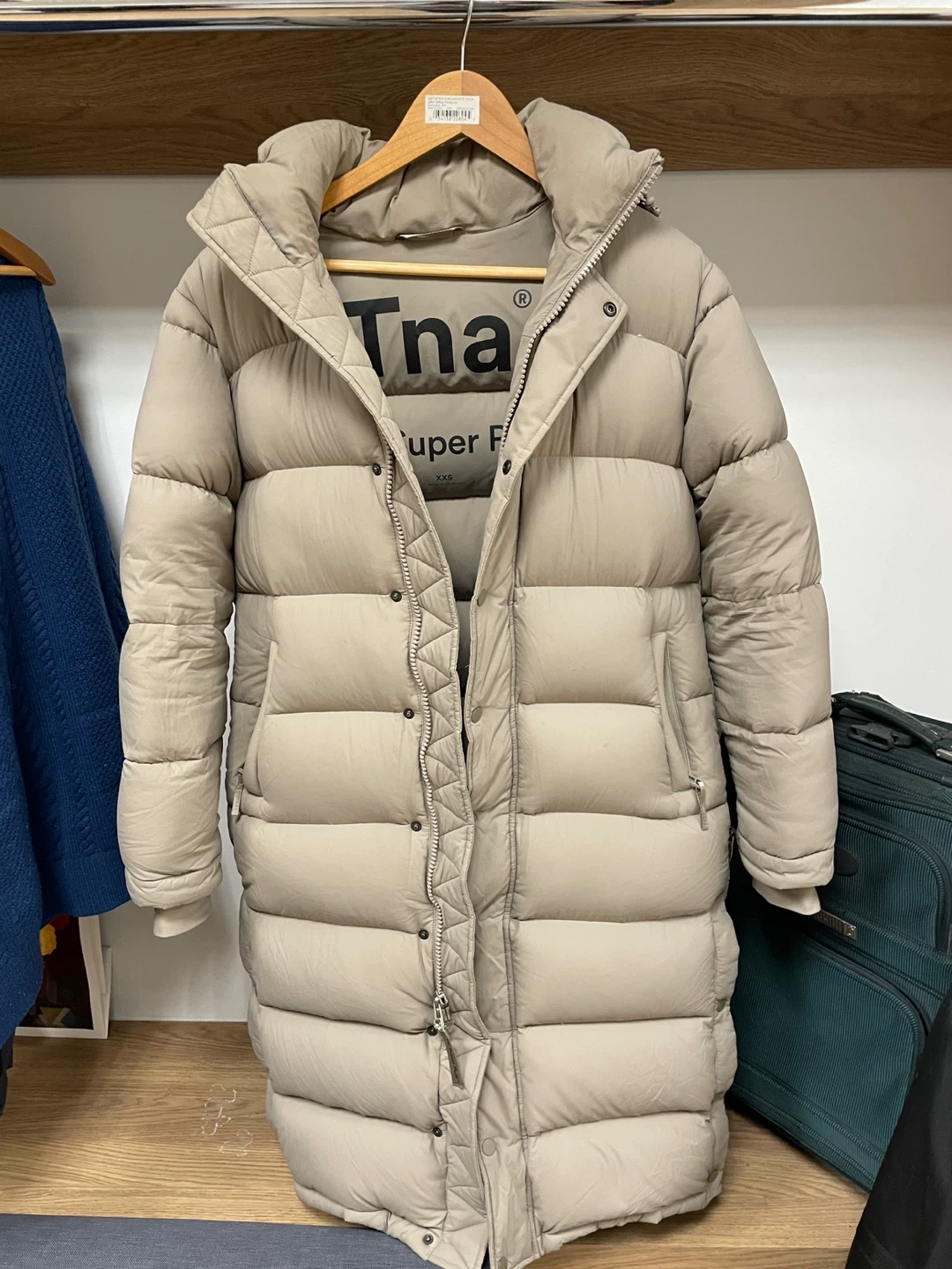 Selling a TNA Super Puff Long coat in a neutral colour. I am selling it for this price because there is a small cut near the pocket, see photo 6. I put a tape over it to ensure that the down doesn’t go through (see photo 7). Please review and assess if this is something you are willing to get repaired (maybe check with tailors if they can do it and what price).