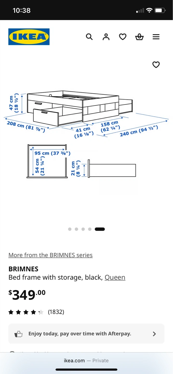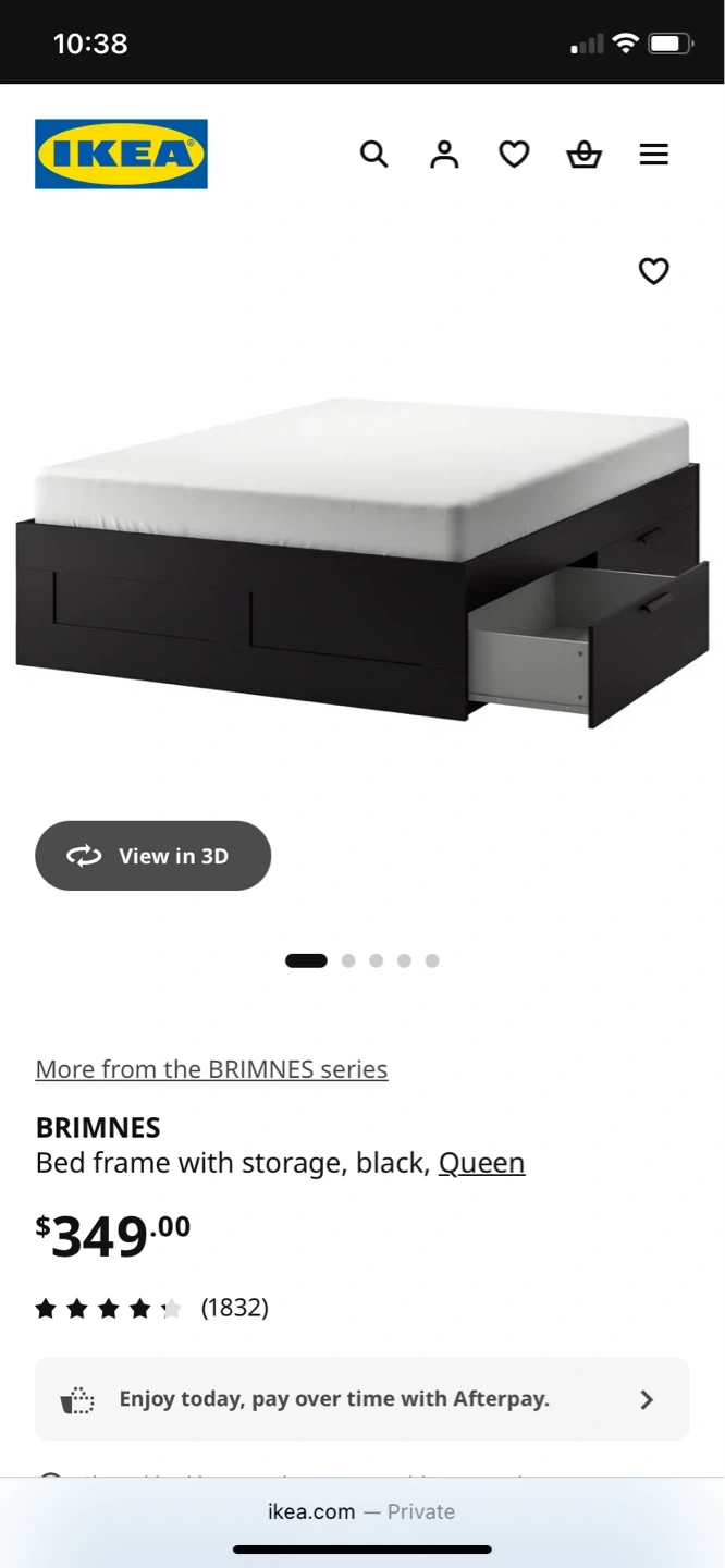 3 years old, good condition queen bed frame with 4 large drawers for storage. No headboard.