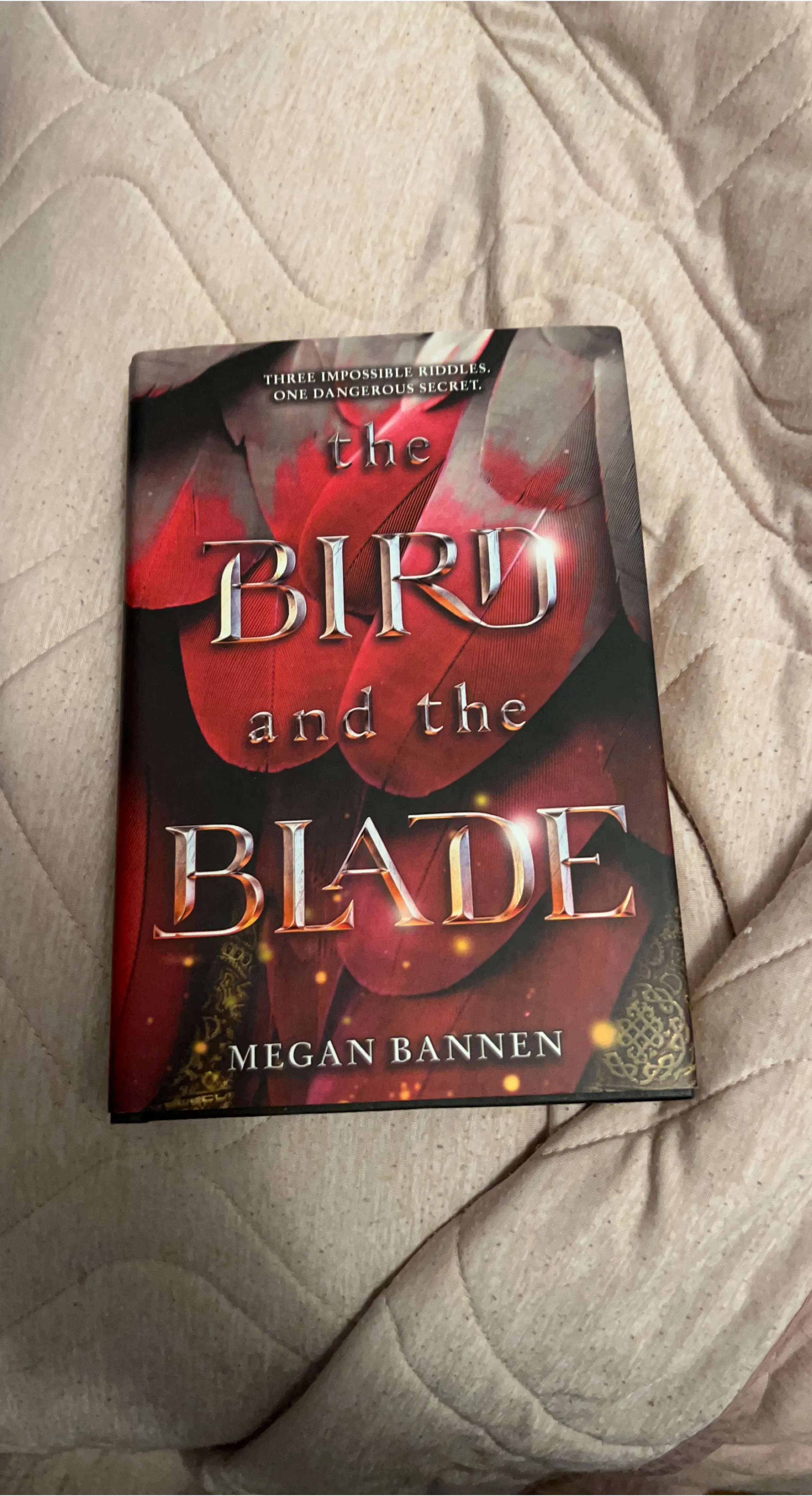 This is the novel "The Bird and the Blade" written by Megan Bannen. It's a fantasy book featuring riddles and secrets. Available for fans of young adult fantasy literature.