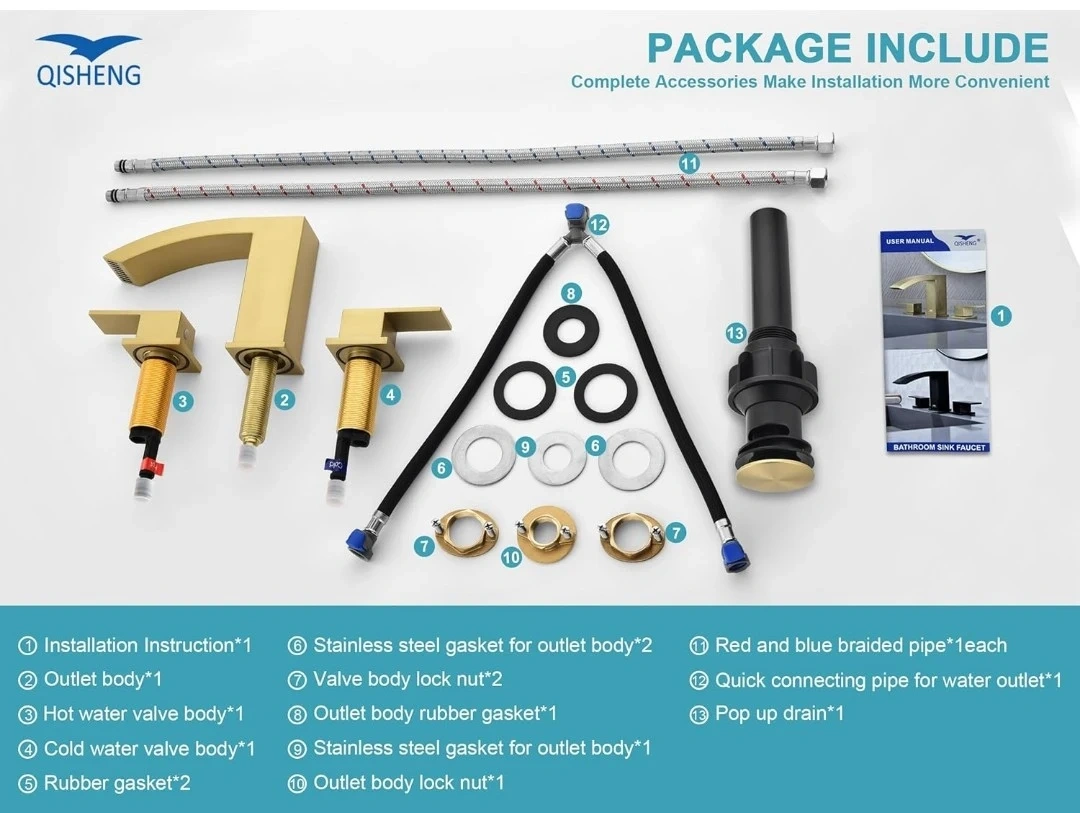 Qisheng Matte Gold Bathroom Faucet with Pop Up Drain