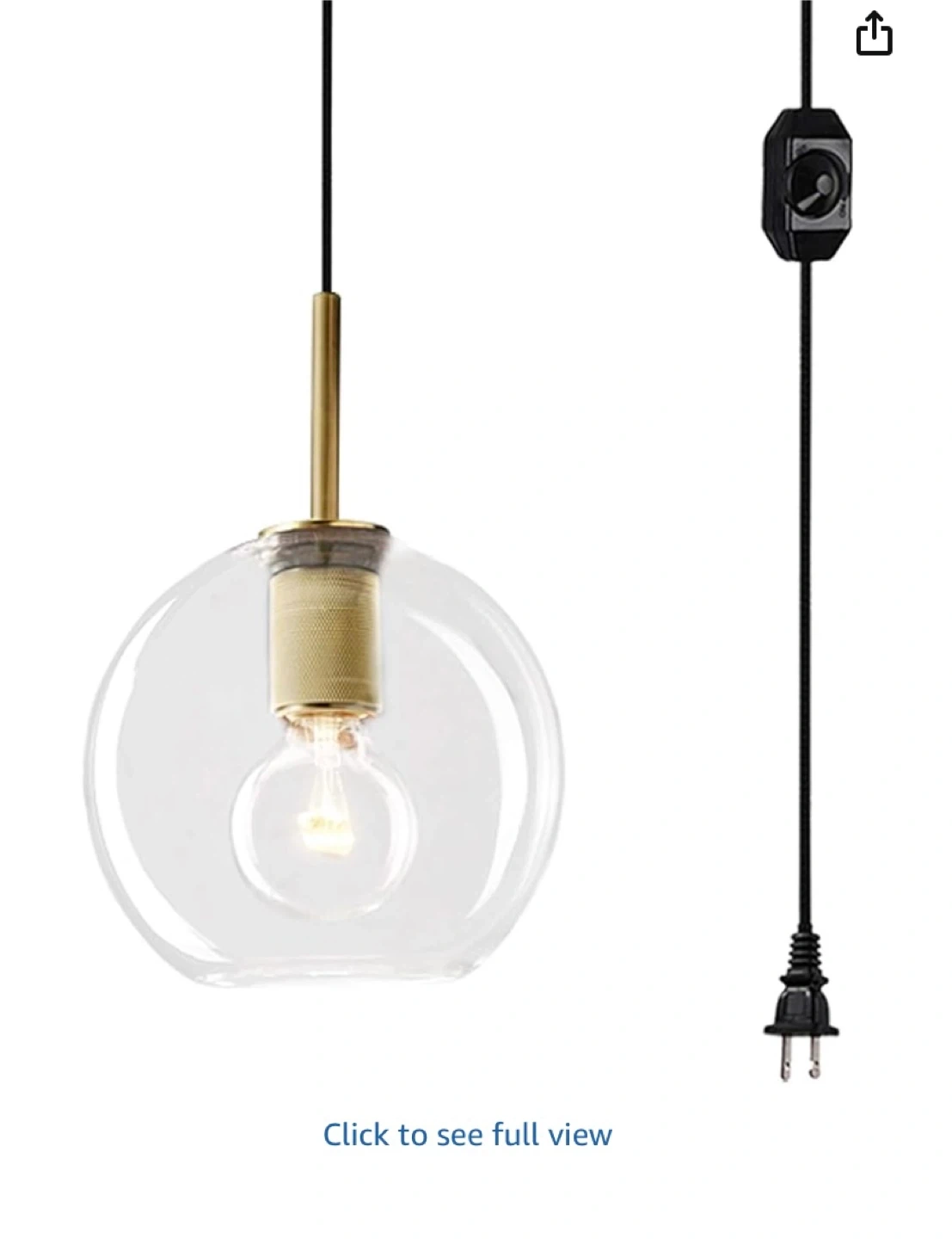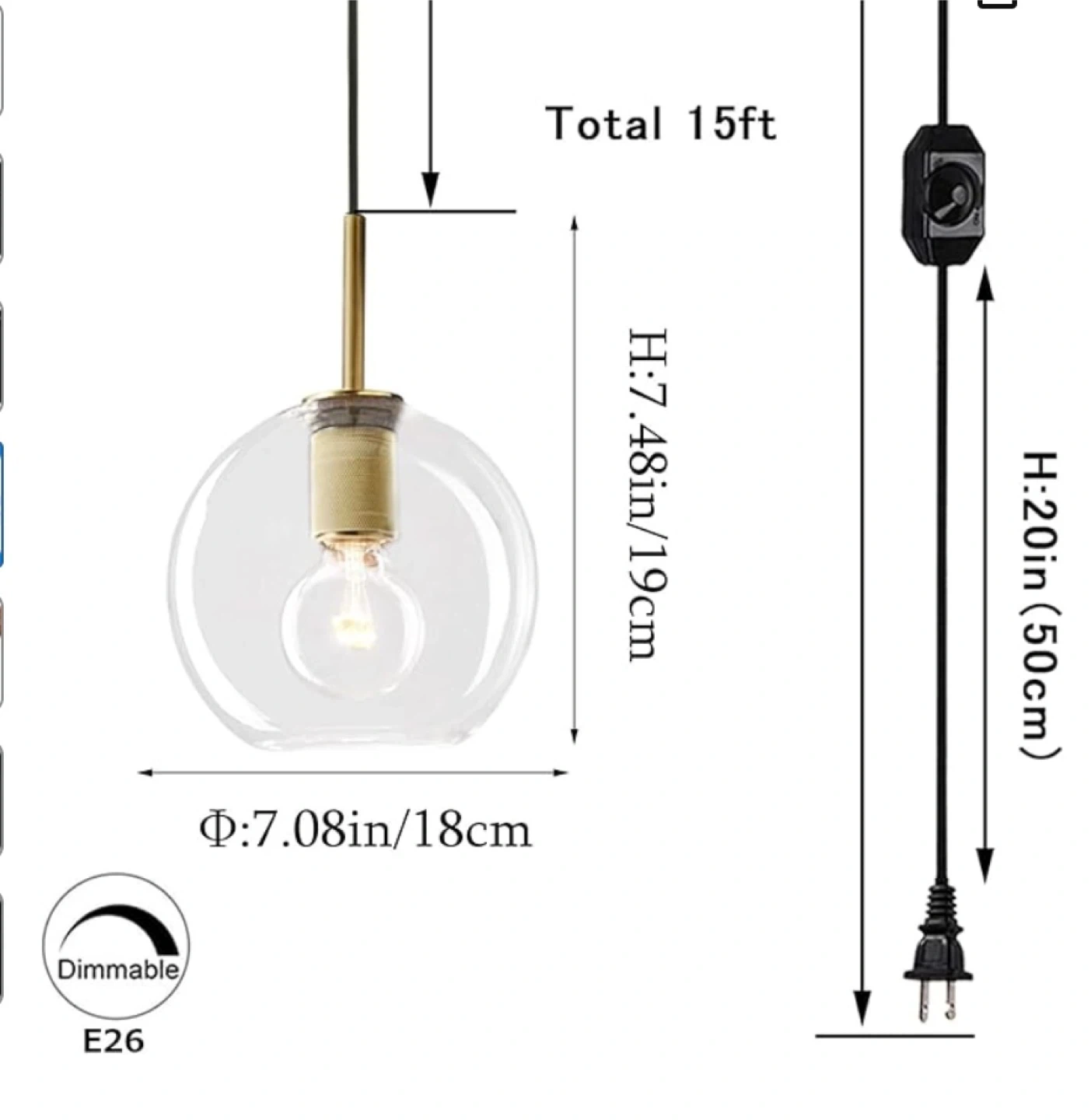 Portable Pendant Light with 15ft Plug-in UL Dimmable Black Cord