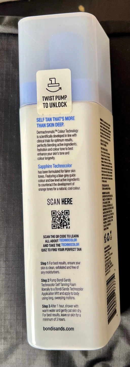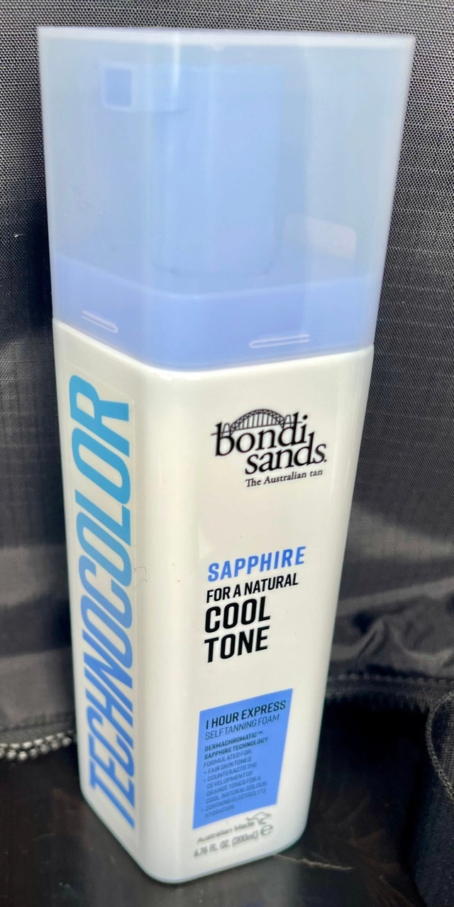 New Bondi Sands Sapphire Technocolor Self Tanning Foam for fairer skin tones. Delivers a natural, cool-toned tan with a blue-grey guide colour. Low-level active ingredients for optimal results. Achieve a sun-kissed look without sun damage! Ideal for fairer skin tones. 1 Hour Express Tanning Foam.