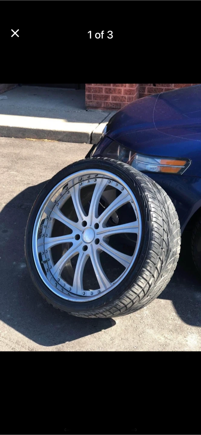 A set of 22 inch custom 3 pices aluminum alloy wheels need new tires These are aftermarket wheels designed to enhance the look of a vehicle. They appear to be in good condition, bolt pattern is 5x120 fit Honda Range Rover etc