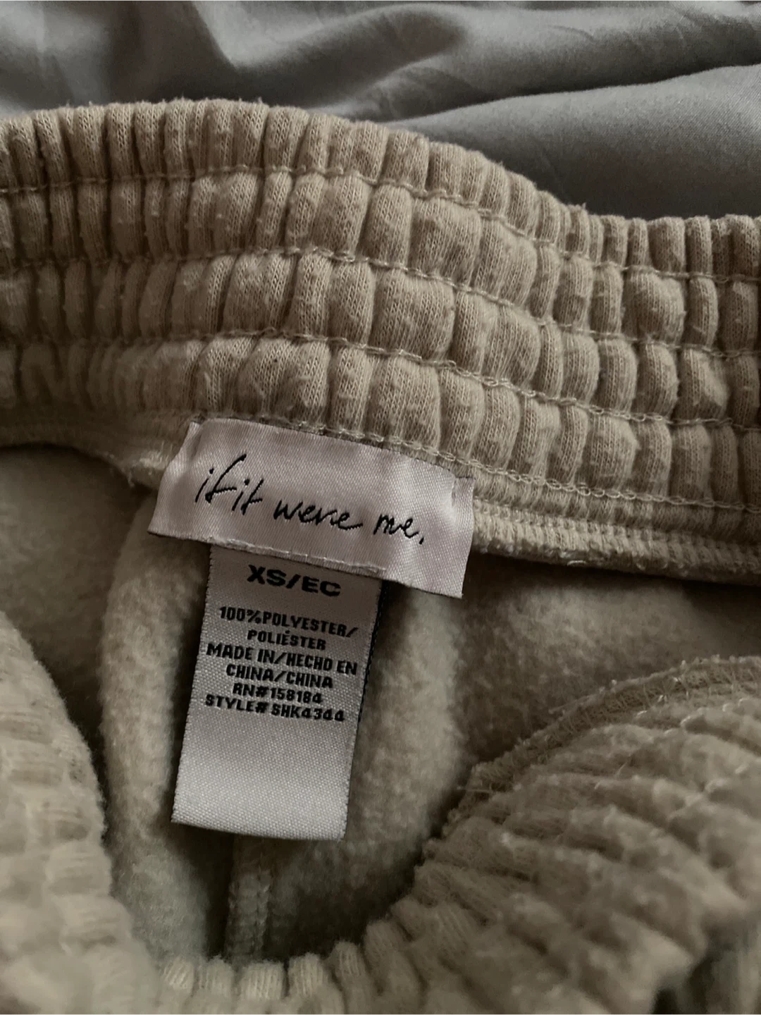 These tan lounge shorts from If It Were Me. are made of 100% polyester. Elastic waistband for a comfy fit. Great for relaxing at home!