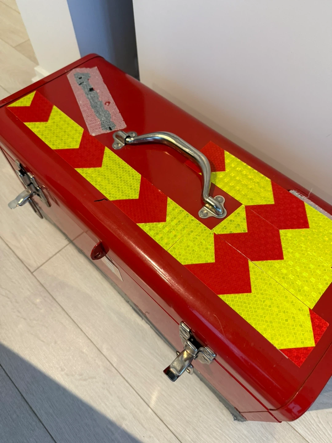 Tool Lot in heavy duty metal Tool Box with top shelf
