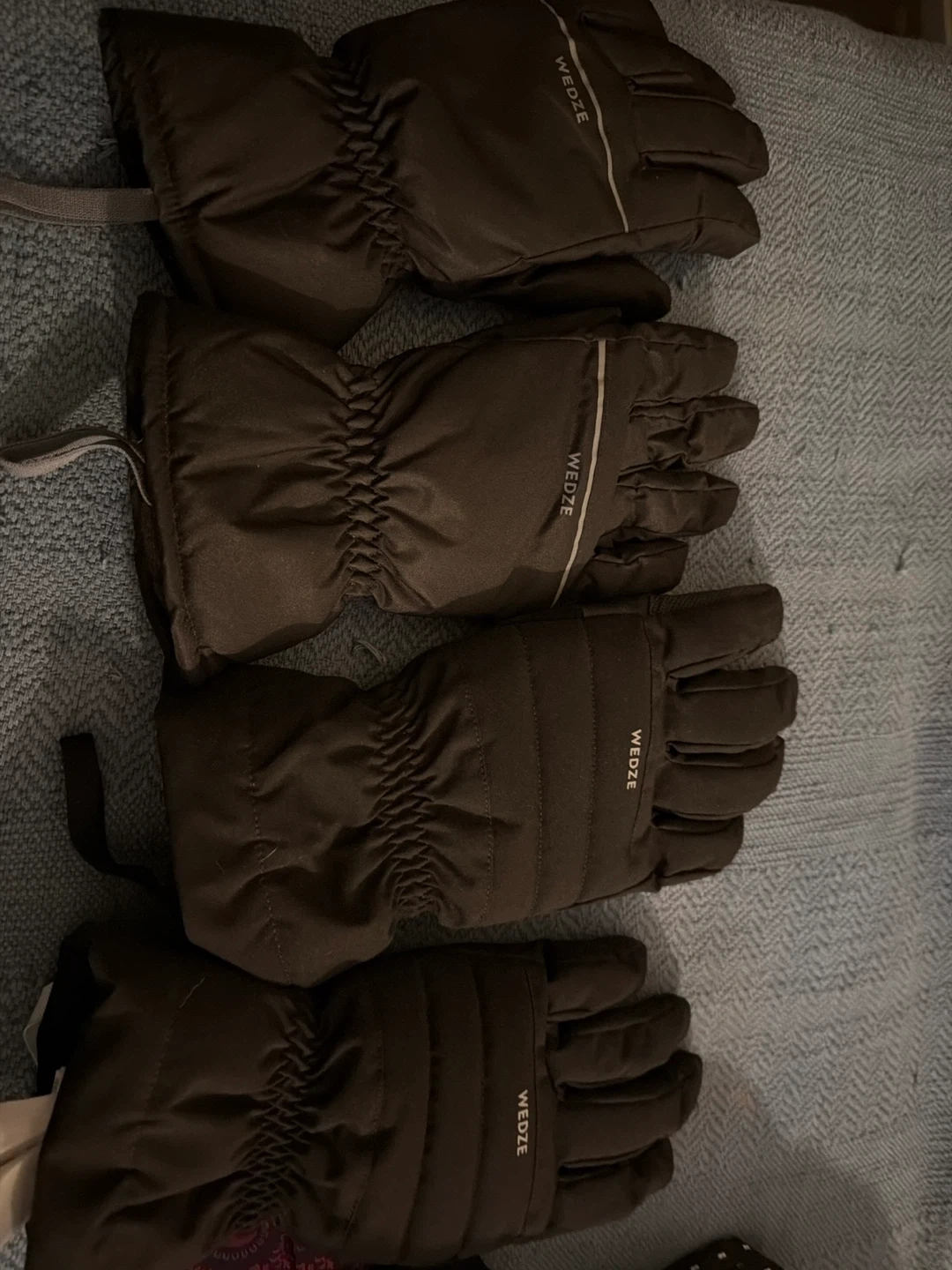 Pair of black Wedze winter gloves. Elastic cuffs keep snow out. Great for cold weather activities!