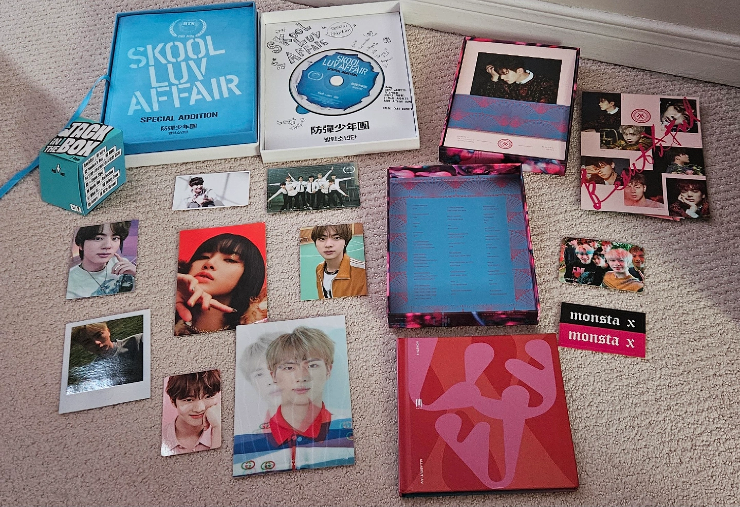 170BTS Skool Luv Affair Special Edition J-Hope's Jack in the Box Monsta X The Clan pt. 2.5 The Final Chapter All about Luv album Lisa Postcard Jin Photocards and Season Greeting 2021 Q photocard