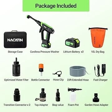 1000PSI Cordless Pressure Washer, 21V 4.0Ah 2 * Battery-Powered Brushless Motor Power Washer with 6-in-1 Nozzle, 9 Gear Pressure, Tap Adapter for Car Washing, Patio, Fence, Driveway, Outdoor Cleaning.