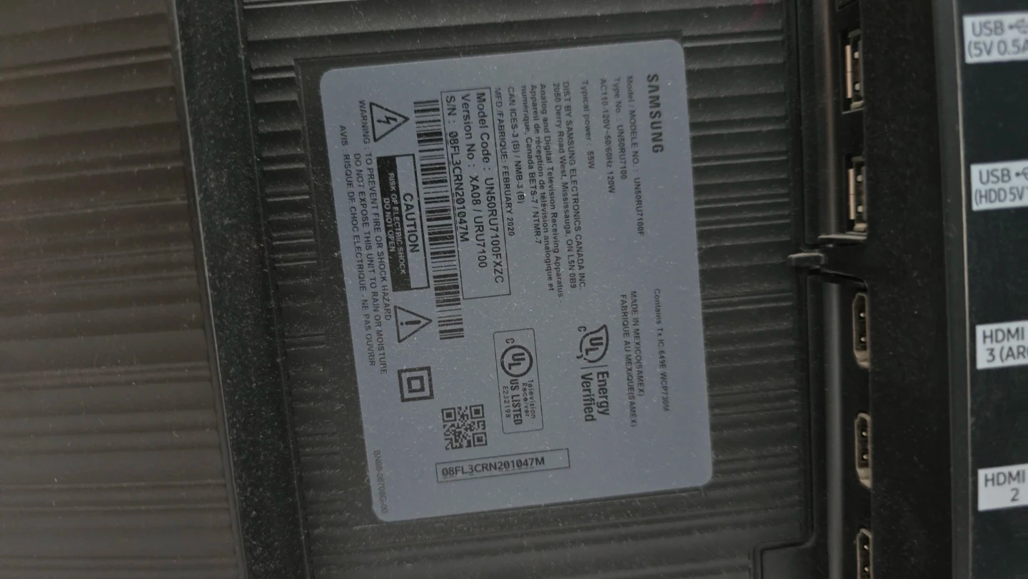 Samsung 50-inch 4K UHD Smart TV. Model UN50RU7100. It's a smart TV with a 50-inch screen. Typical power consumption is 55W.
