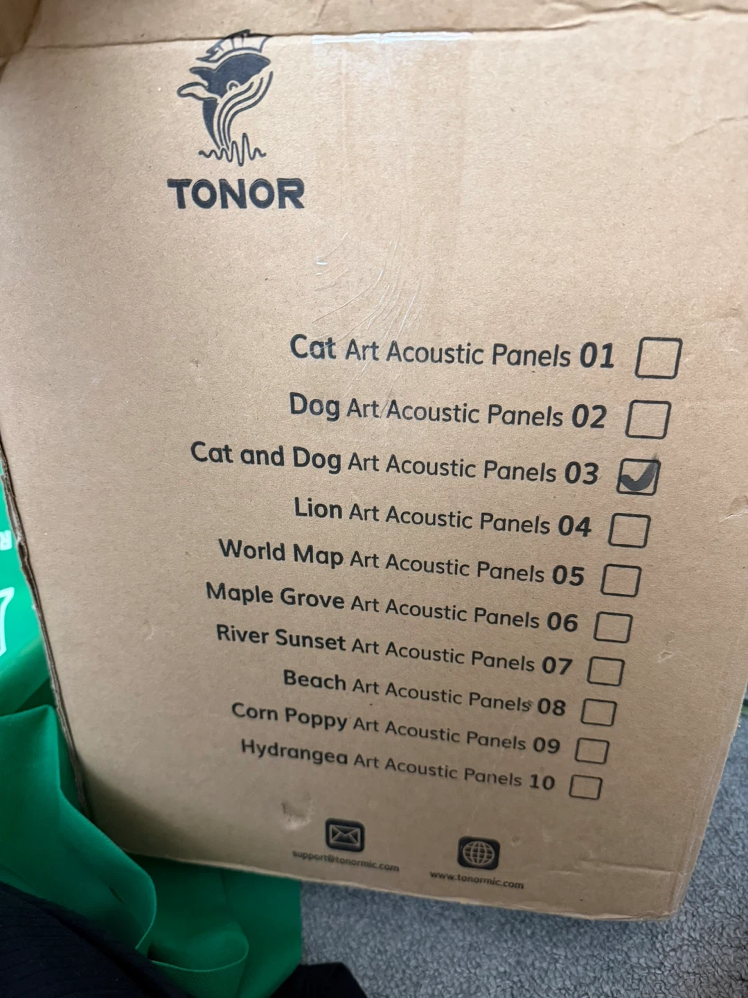 This is a set of TONOR cat and dog acoustic panels featuring a cute corgi and a playful cat. The panels come in a 6-pack. They're perfect for adding a touch of charm to your living space!