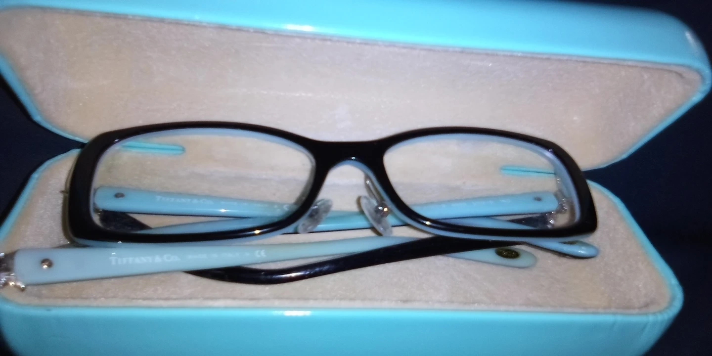 Selling a pair of Tiffany & Co. eyeglasses! They have a stylish black frame with a lovely light blue interior. Comes with the original Tiffany & Co. case to keep them safe and sound