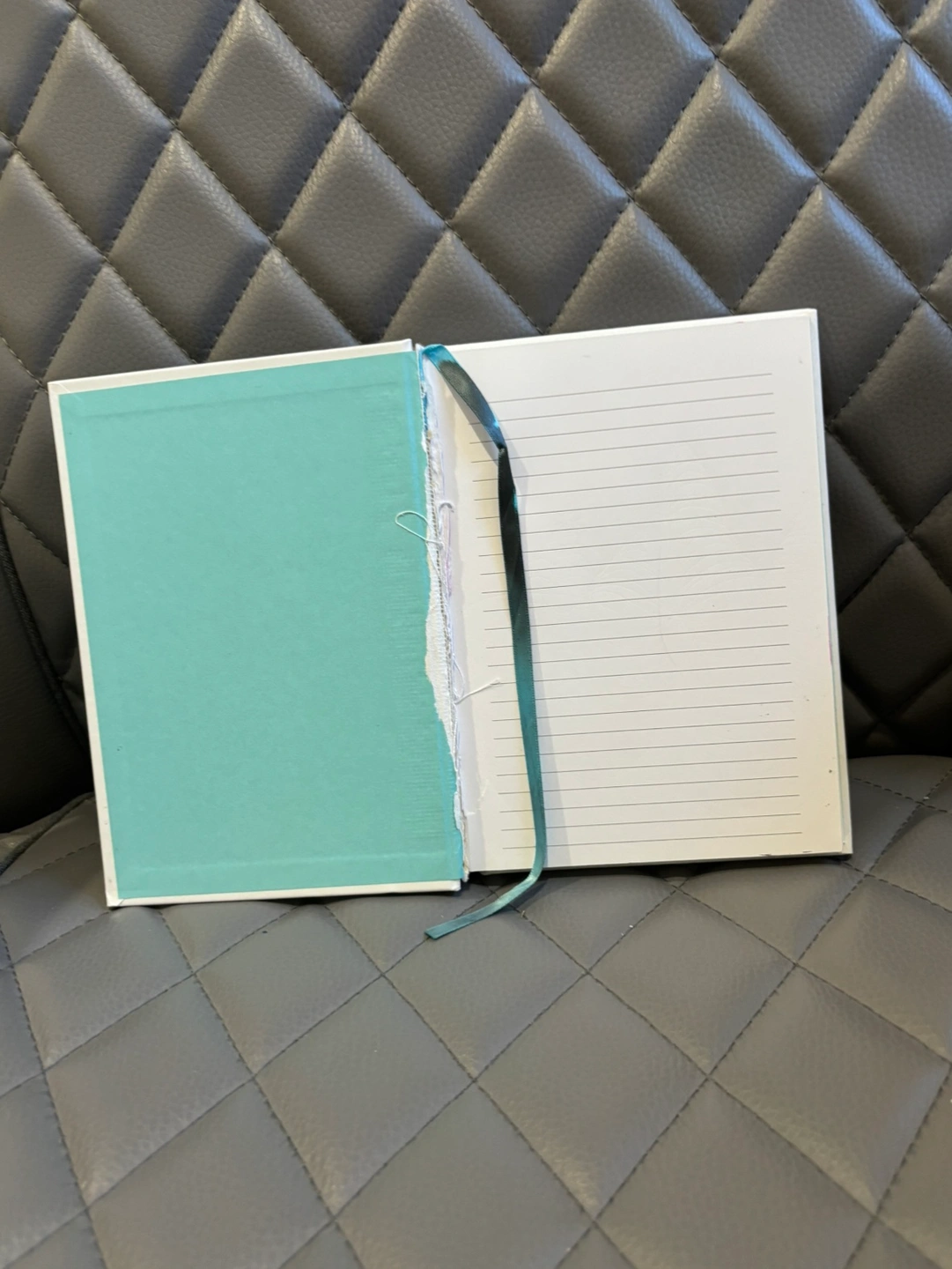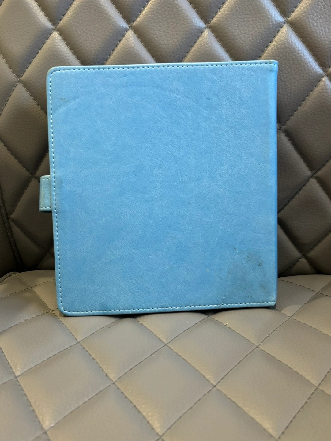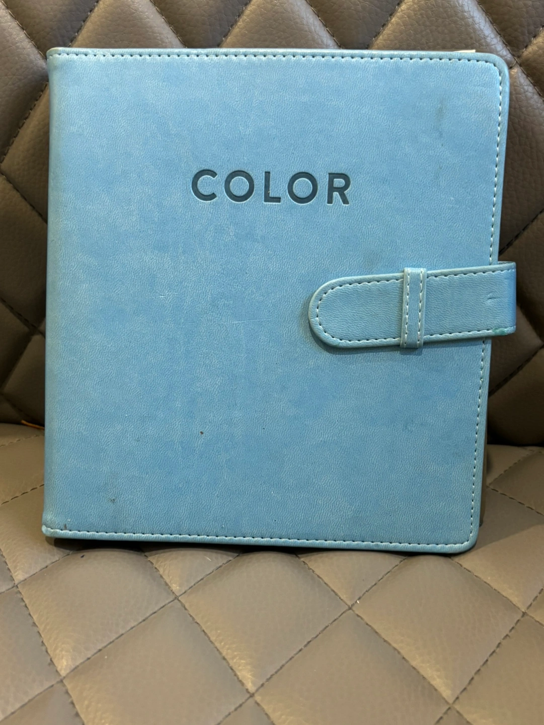 Blue sketch book with a built-in pencil holder. Includes a small notepad and 10 pencils. This is a bundle of oragami paper and used sketchbook and notepad.