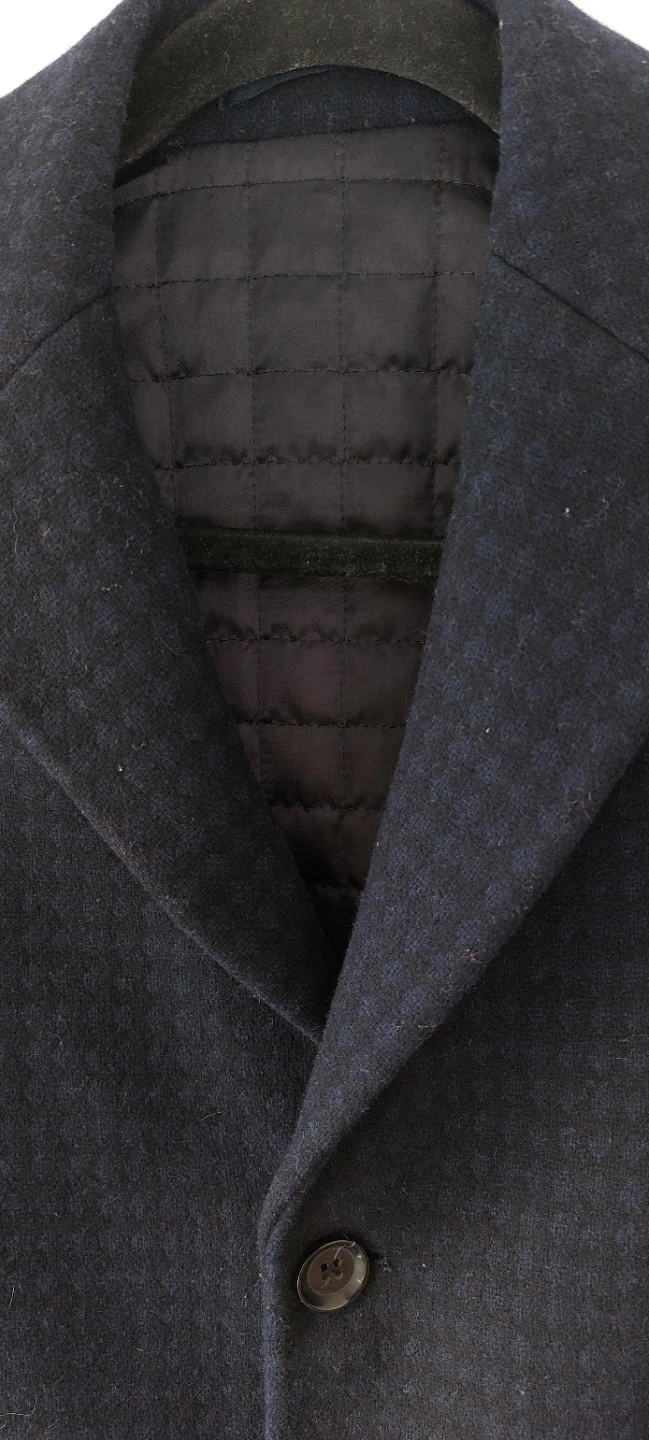A classic navy blue coat, perfect for cooler weather! The coat features a button-up front and a tailored fit. It's in great condition and ready for a new owner! Size: S/M