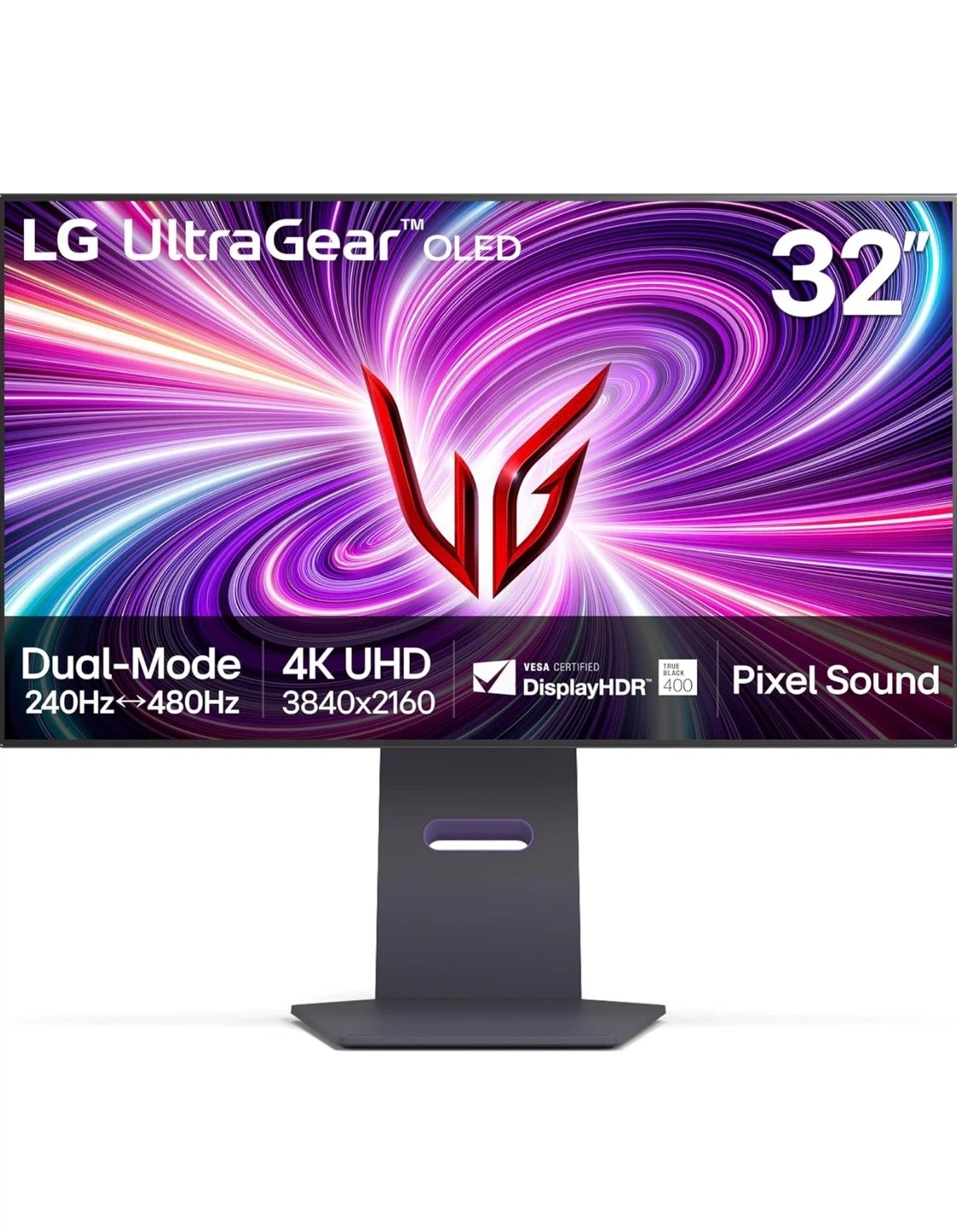 LG 32GS95UE-B 32'' Ultragear™ OLED Gaming Monitor with UHD Display Dual Mode 240Hz, 480Hz 0.03ms G-SYNC, FreeSync Premium Pro, HDR400 True Black, HDMI 2.1, Anti-Glare Tilt/Height/Swivel Stand