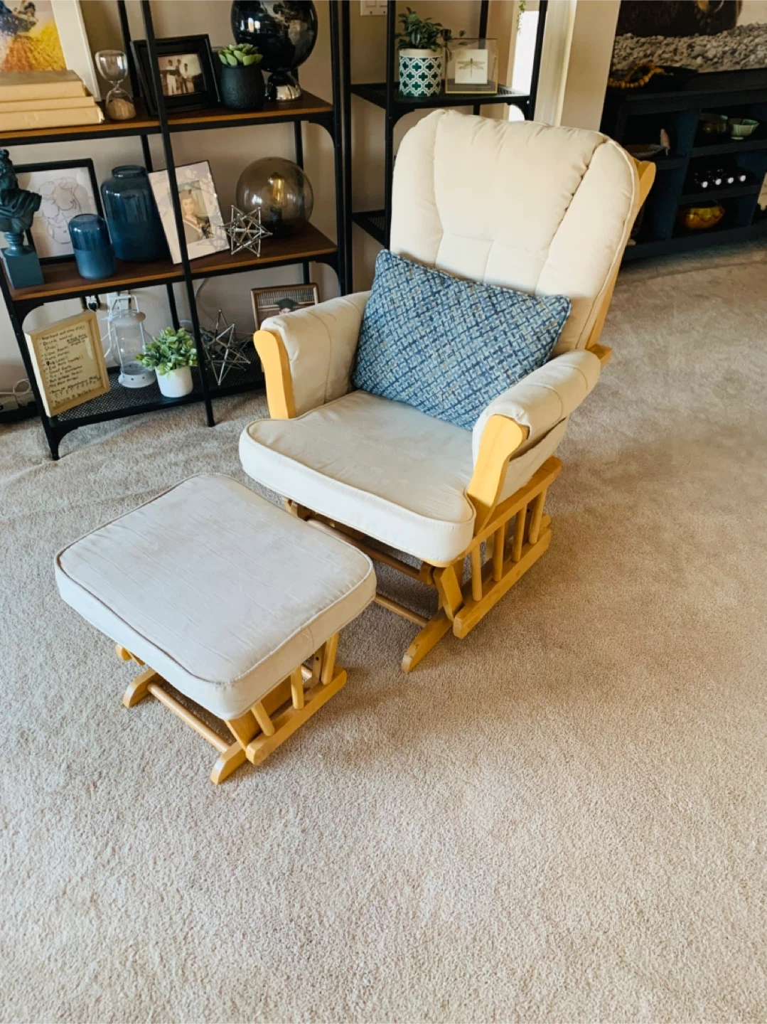 Cream Glider Chair and Ottoman Set