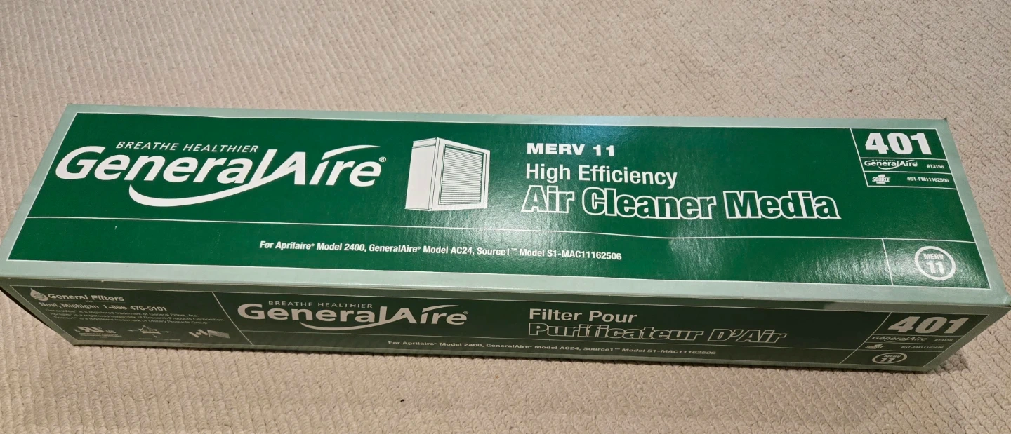 GeneralAire 13156 /401 / GFI 4051 AC-24 furnace filter. MERV 11 High Efficiency Air Cleaner Media filter. Fits GeneralAire AC24, Aprilaire 2400, and Space-Gard 2400.