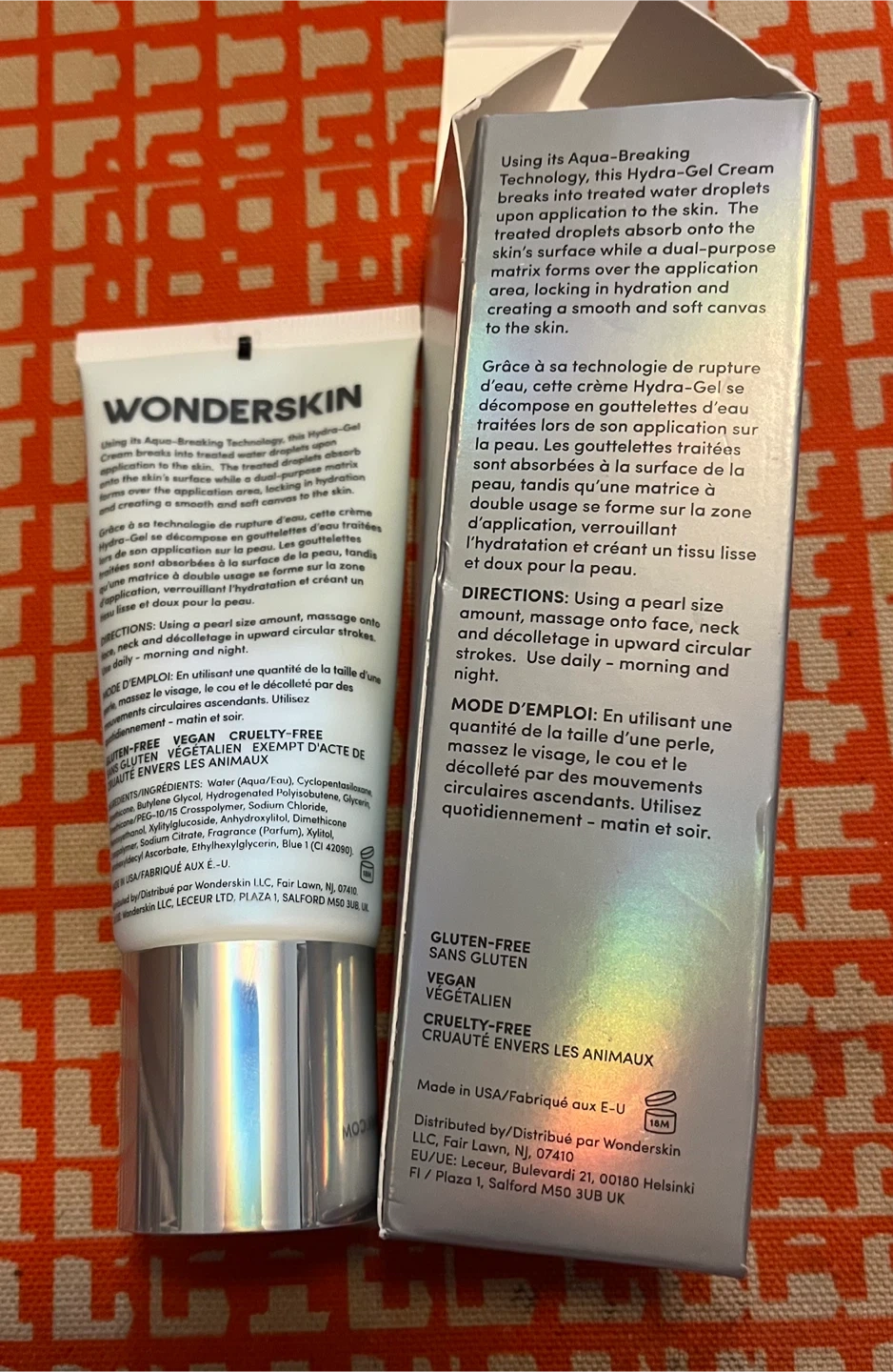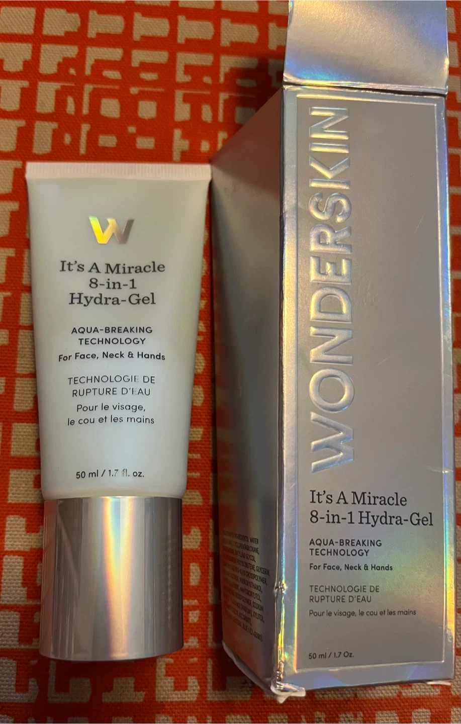 This is WONDERSKIN's It's A Miracle 8-in-1 Hydra-Gel. It utilizes Aqua-Breaking Technology for hydration. Apply a pearl-size amount daily.