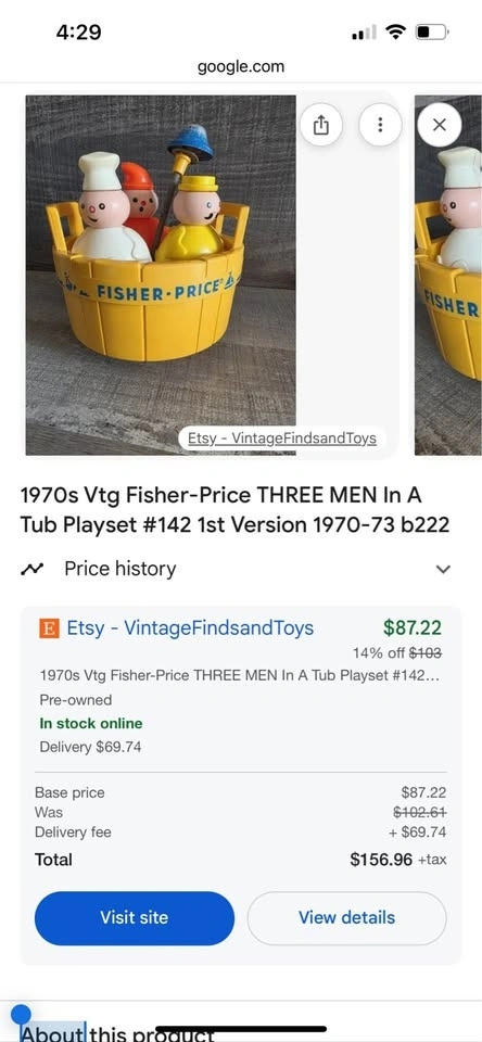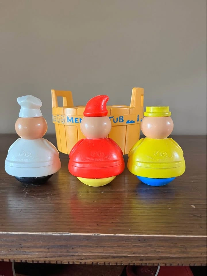 This Fisher Price toy - 3 men in a tub is a great toy for the bathtub or on the floor. Teaches eye-hand coordination by putting men in and out of the plastic tub. All pieces are in excellent condition.
