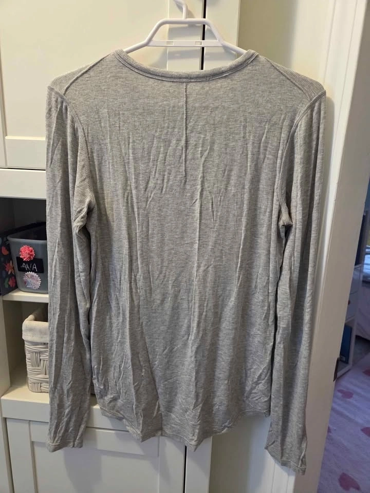 Shirt 1: light Grey ribbed ling sleeve, size 12, EUC $30