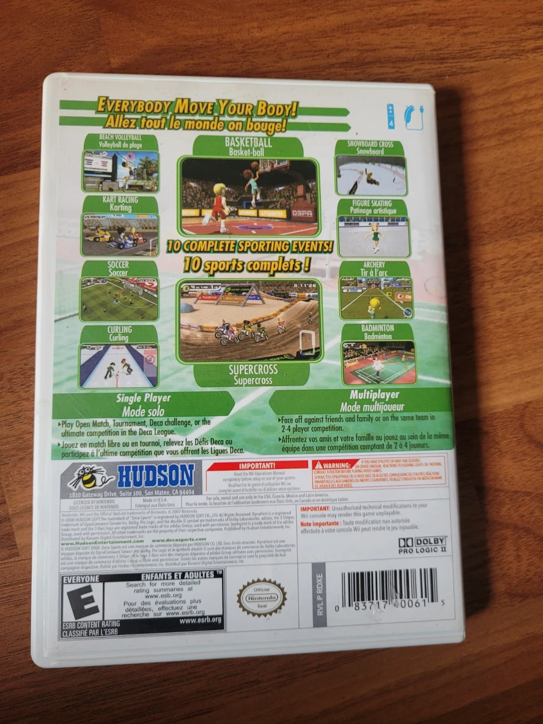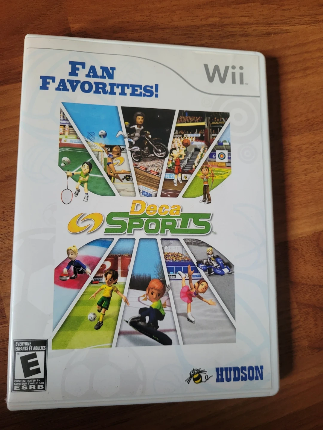 Complete Deca Sports game for the Wii. Has 10 different sports to play, like basketball, soccer, kart racing, and figure skating. You can play single player or with friends, up to 4 players. Super fun for everyone!