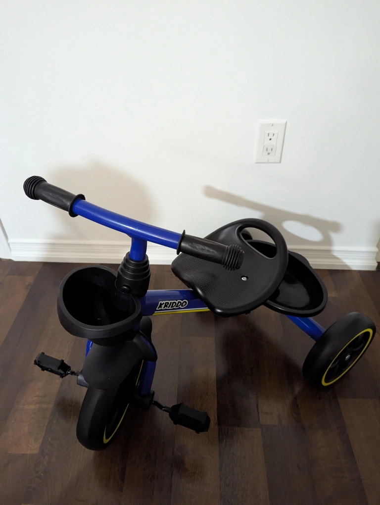 92Selling a KRIDDO kids' tricycle in blue! It's in great condition and ready for a new rider. Perfect for little ones learning to balance and pedal. Features a sturdy frame and comfortable seat. Great for indoor or outdoor fun and exercise.