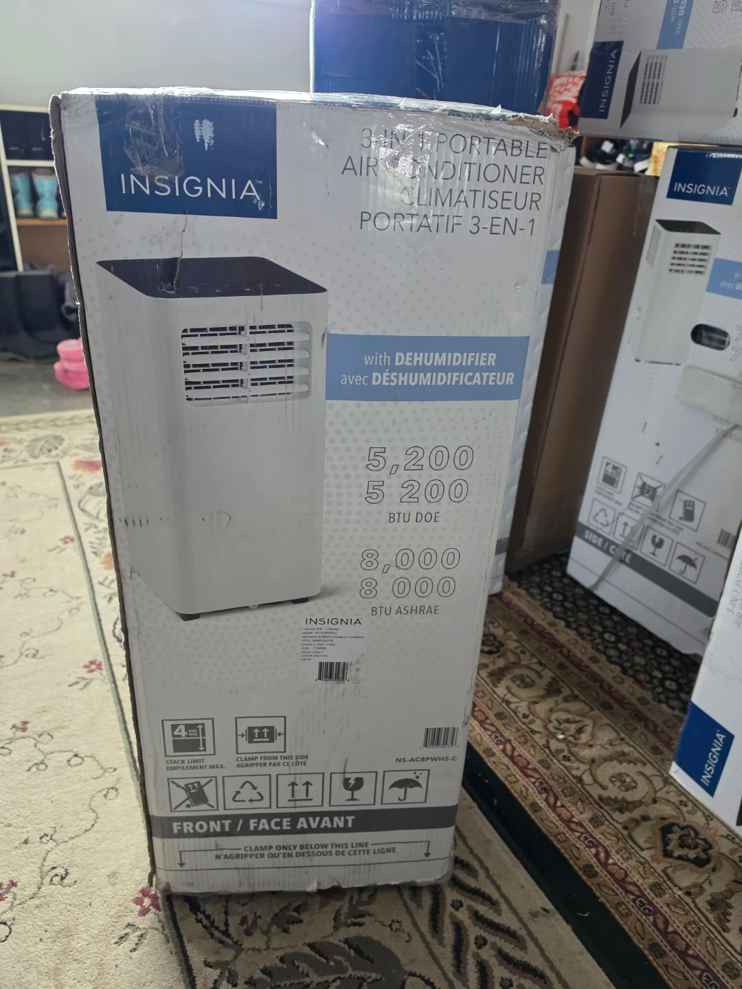 I have multiple Insignia portable air conditioner offers three functions(please the the pictures) : air conditioning, dehumidifying, and fan. It's designed for efficient cooling and comfortable air circulation in rooms up to 350 sq ft. The unit includes a remote and an air filter, and it requires a window kit for installation.