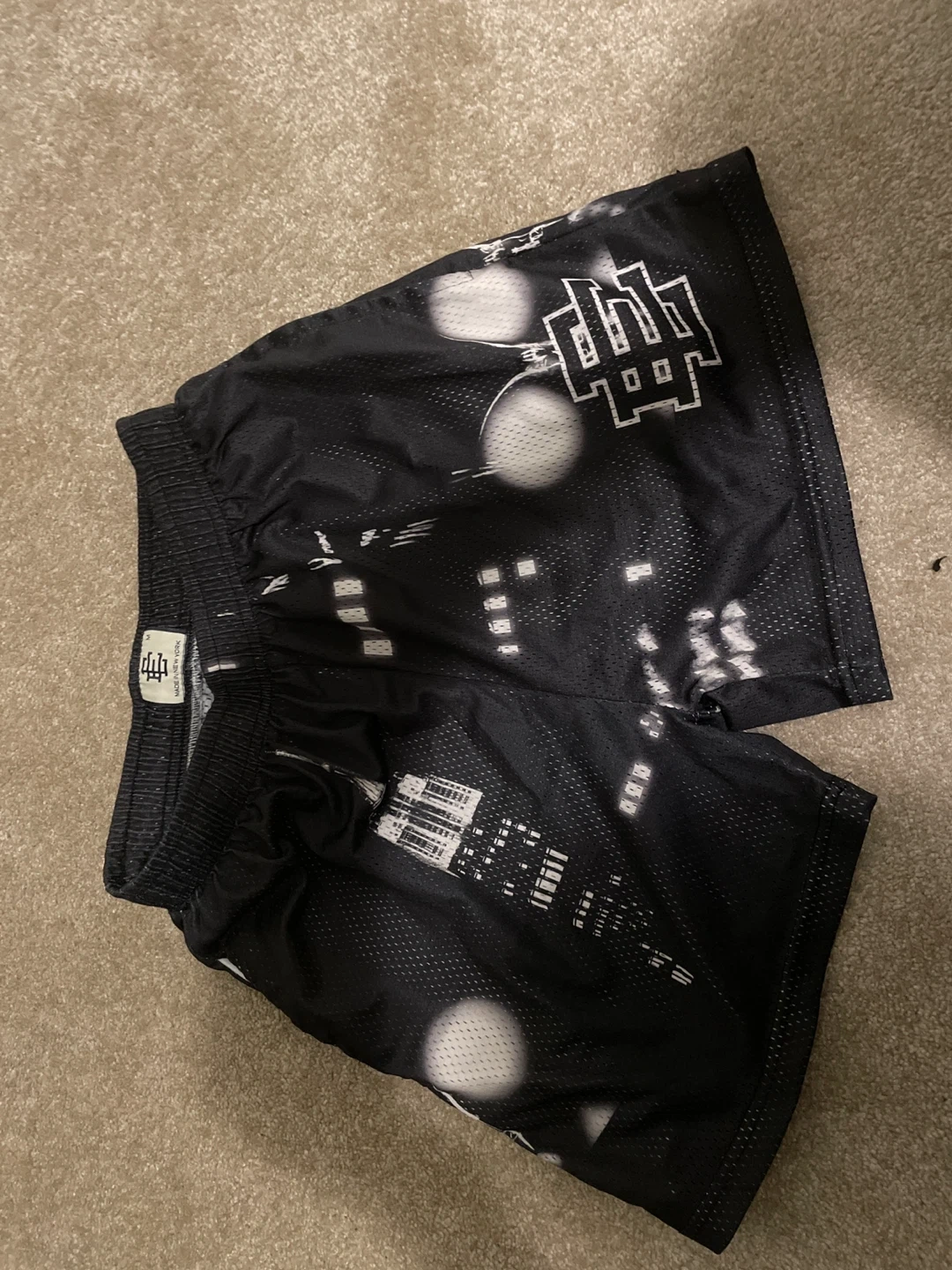 These Eric Emanuel EE New York shorts are in great condition! The shorts are a size medium and feature a cool New York City skyline design. Perfect for casual wear or sports