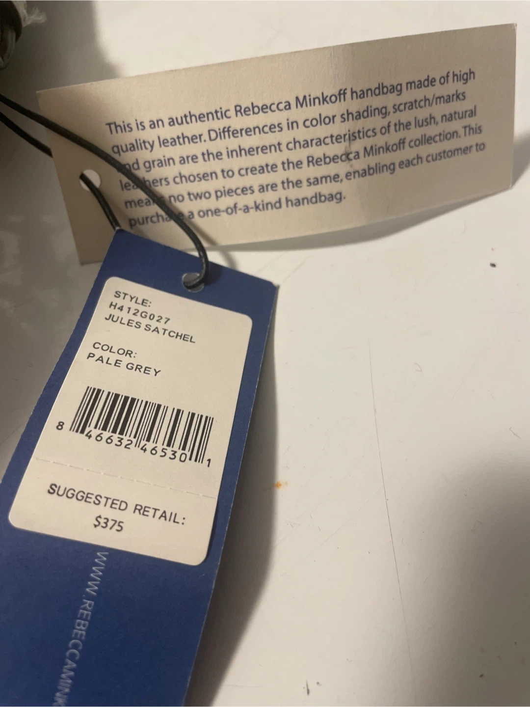 This is an authentic Rebecca Minkoff handbag made of high quality leather. Differences in color shading, scratch/marks and grain are the inherent characteristics of the lush, natural leathers chosen to create the Rebecca Minkoff collection. Style is Jules Satchel. Color is Pale Grey.