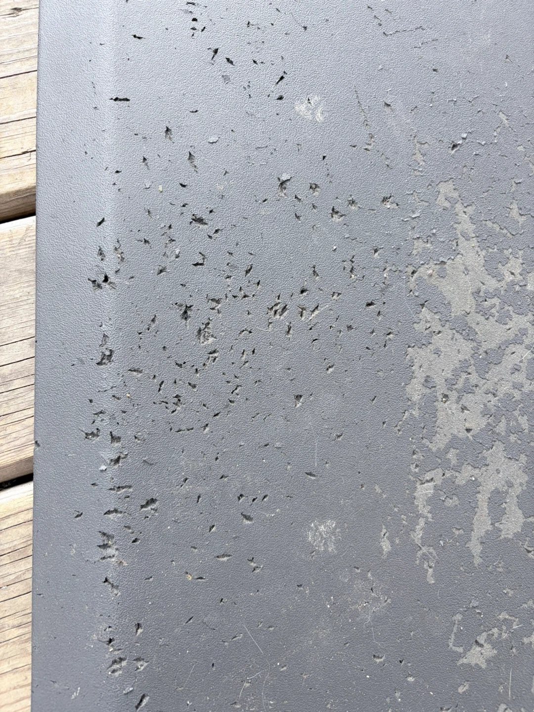 This anti-fatigue mat is dark grey. It's designed for comfort. The mat has a textured grid pattern on one side. (its got scuffs from cat pawing it unfortunately but still works great!) FREE pick up joyce street area