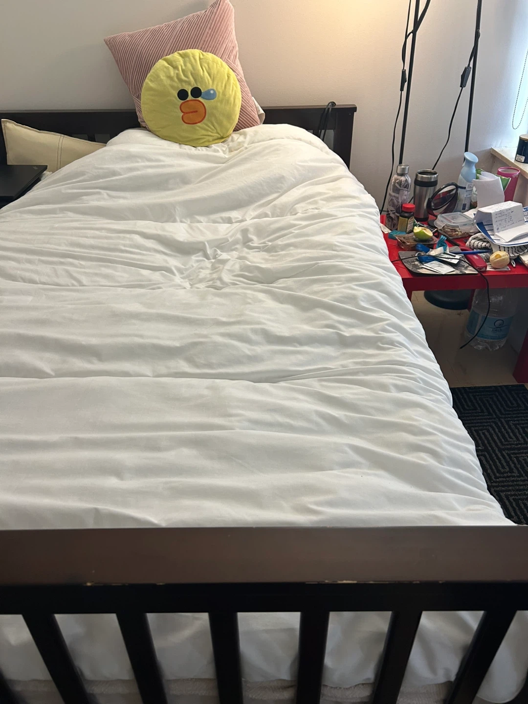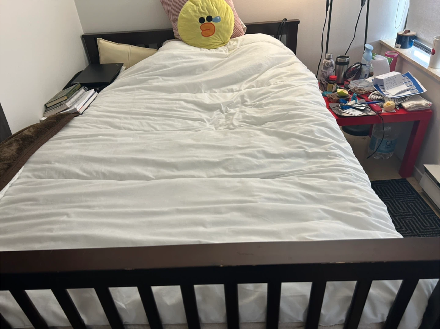 Dark Wood Queen Bed Frame with mattress