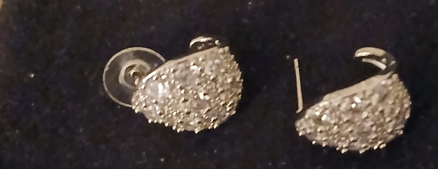 Sparkly rhinestone ring and matching stud earrings. This set is silver-toned and perfect for adding a touch of glamour. Great for dressing up any outfit!