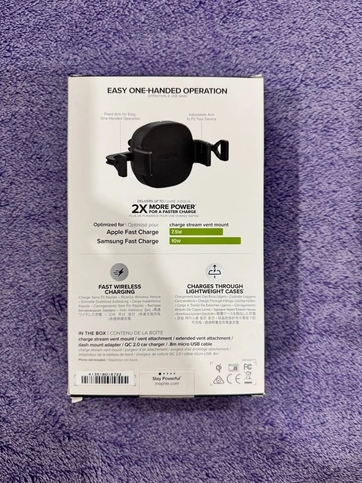 Selling a brand-new Mophie charge stream vent mount wireless car charger. Box just opened for photos, never used. Qi-compatible wireless charging for Apple, Samsung, LG & other Qi-enabled phones. Fast charge support: up to 7.5W for Apple and 10W for Samsung. Easy one-handed operation with adjustable arms to fit most phones. Charges through lightweight cases. Secure vent clip design to keep your phone in place while driving. Included in box: vent mount charger, vent attachment, extended vent attachment, dash mount adapter, QC 2.0 car charger, and micro-USB cable (all original accessories). Perfect if you want a clean, cable-free setup in your car. If Ad is up, then its still available. I'm willing to deliver in the North Quadrant of the city or your can also pick it up in Airdrie.