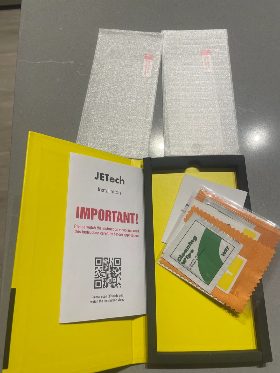 Includes two tempered glass screen protectors, cleaning wipes, and an installation guide. Protects your phone screen from scratches and damage with 9H hardness. Highly responsive touch feel.