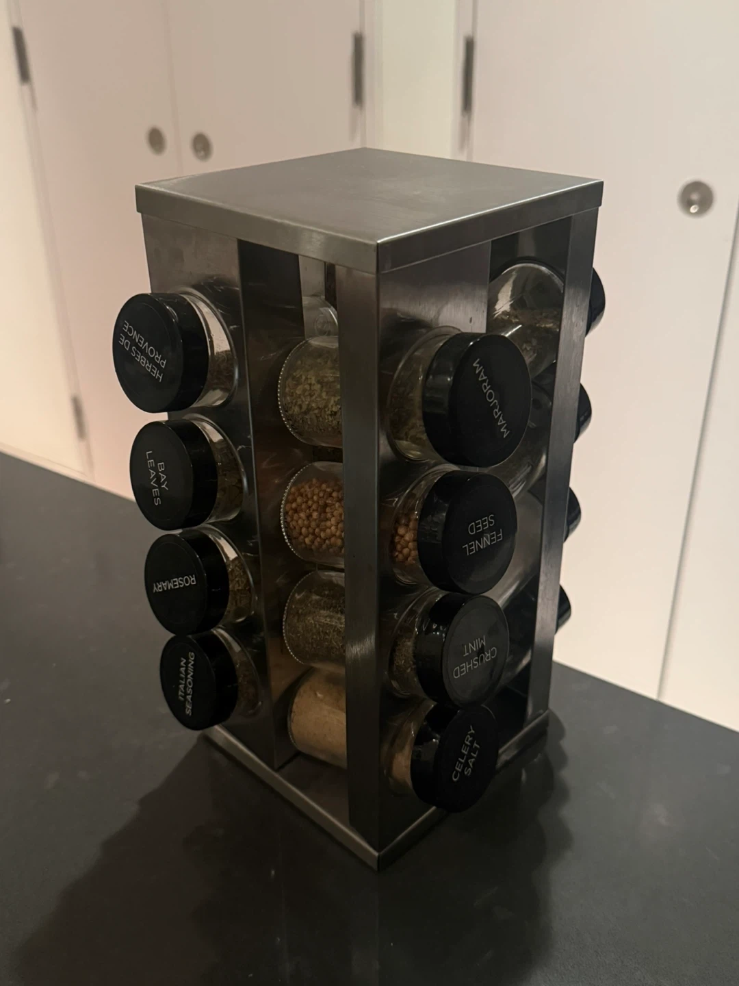 16-Jar Stainless Steel Spice Rack with Spices (No Parsley)