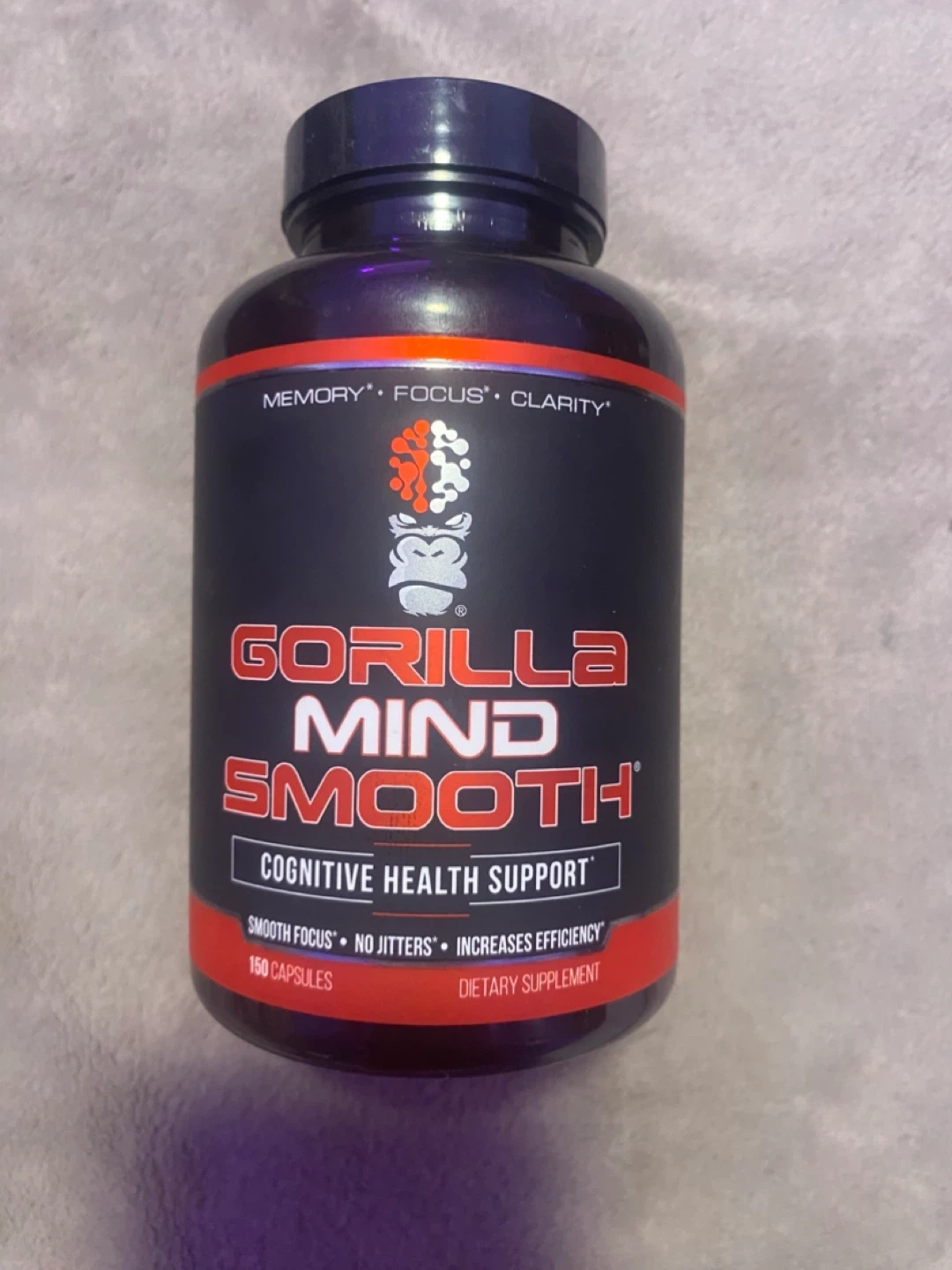 Gorilla Mind Smooth dietary supplement for cognitive health support. It contains 150 capsules. Smooth focus and increased efficiency without jitters!