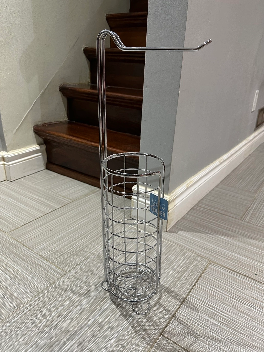 🧻 toilet paper holder and reserve 🧻 holds 4 rolls - 3 in reserve and one on the holder 🧻 chromewire construction • brand: Kitchen Stuff Plus • new condition #BNWT Pickup in Wallace/Emerson Cash only, please