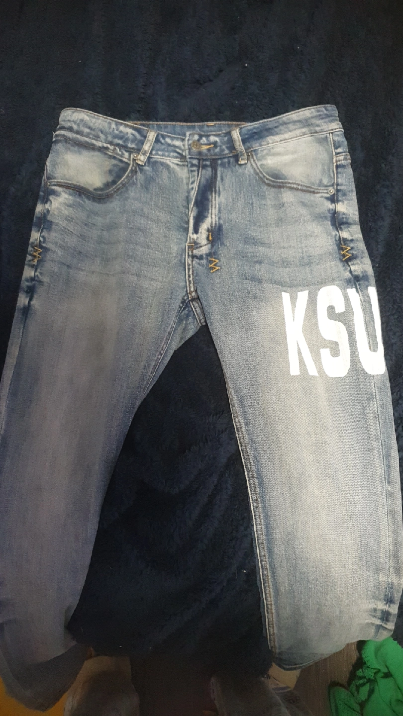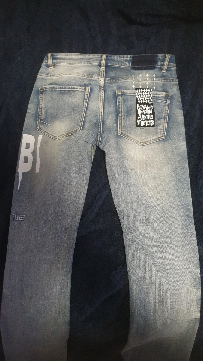Selling a pair of KSUBI blue denim jeans comes with bag. They are in good condition and feature a unique design. These jeans are perfect for adding a stylish edge to your wardrobe!