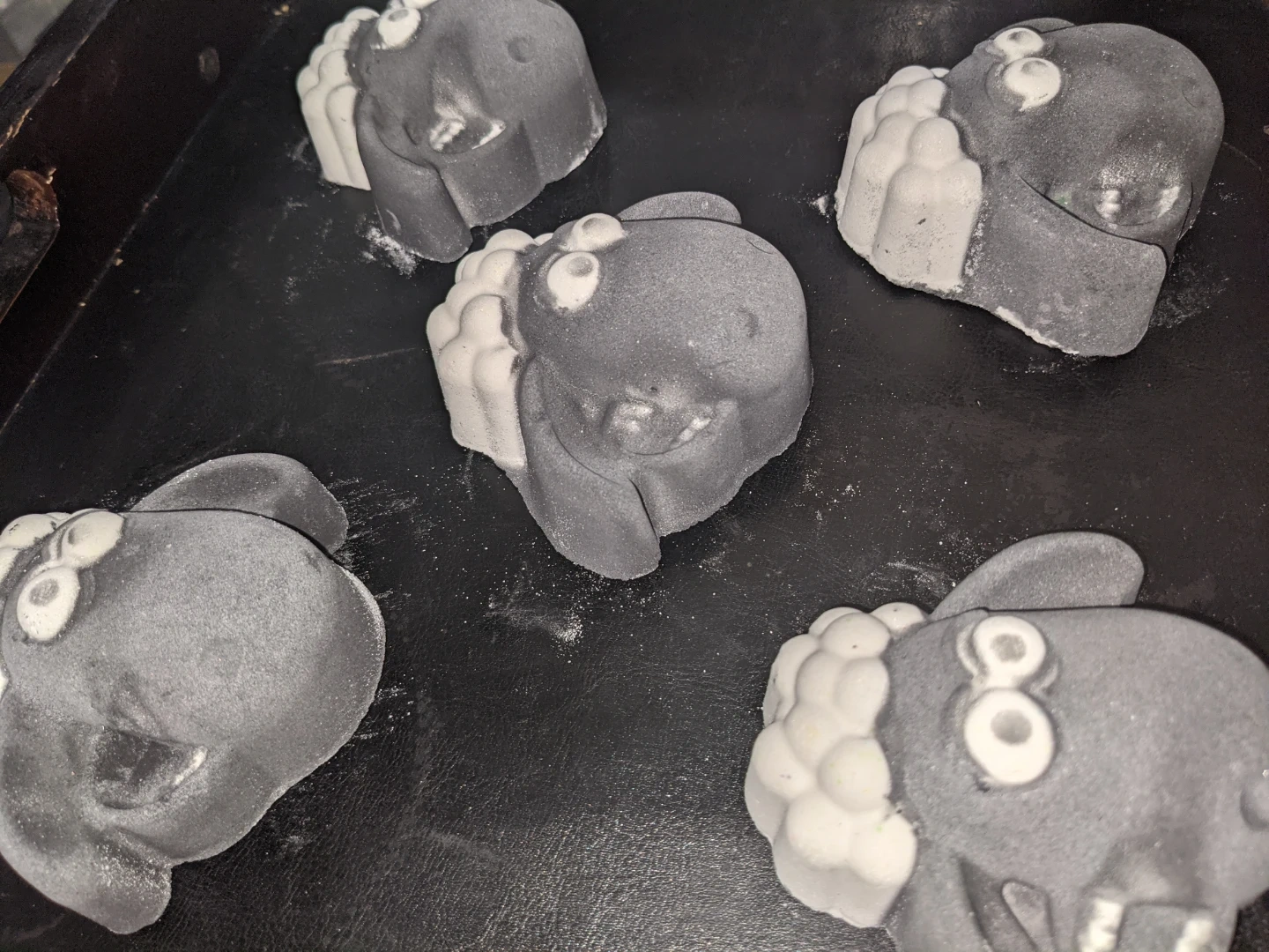Five fun bath bombs shaped like little sheep. They're great for a relaxing soak in the tub. Made with ingredients to help you unwind.