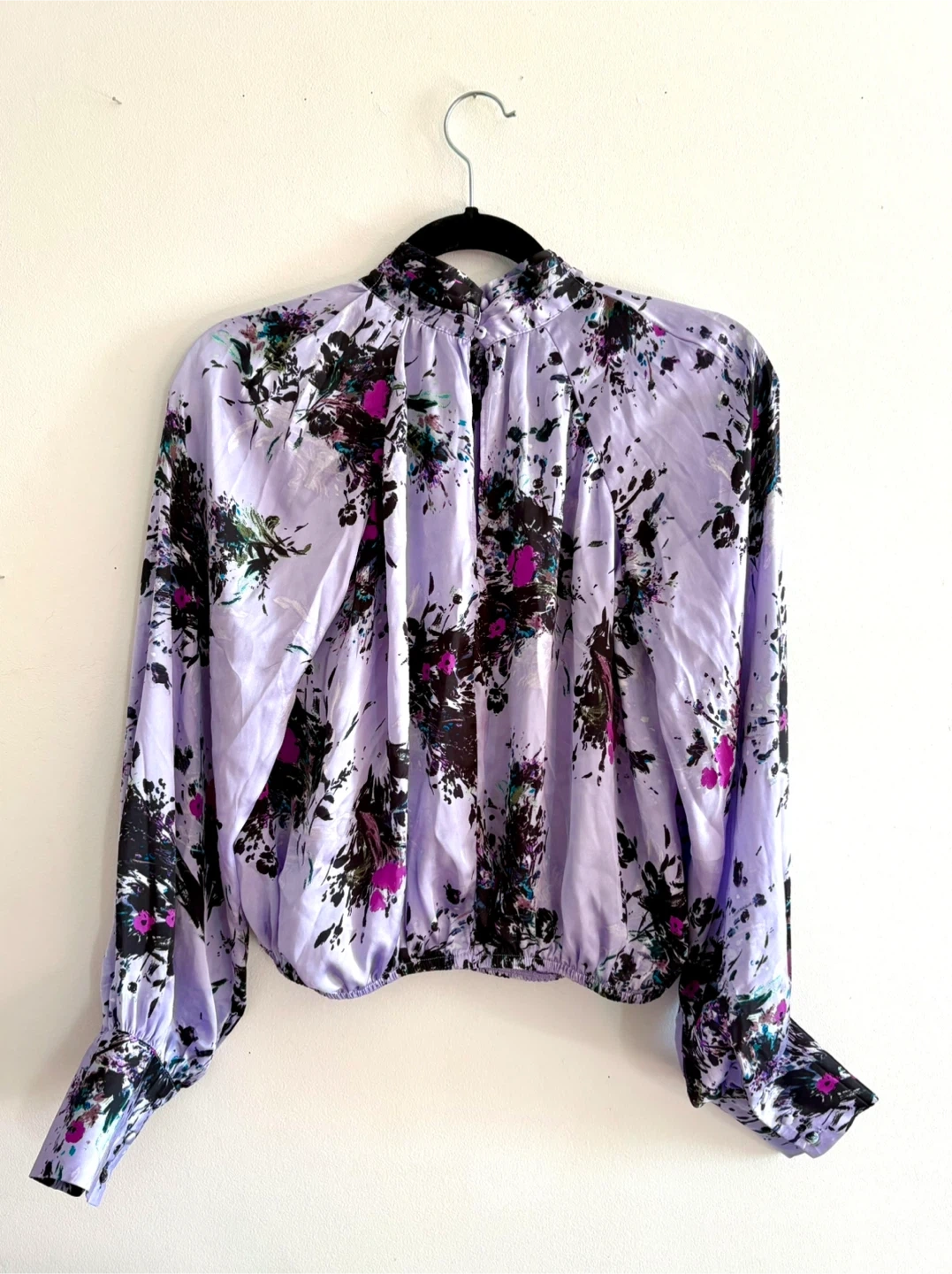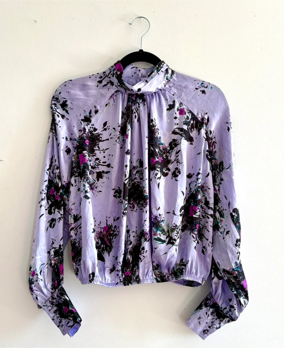 Floral Print Satin Blouse - Size S/P
