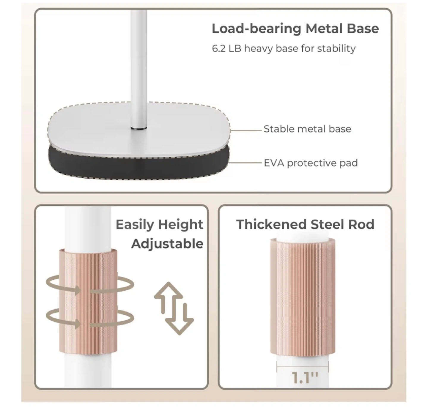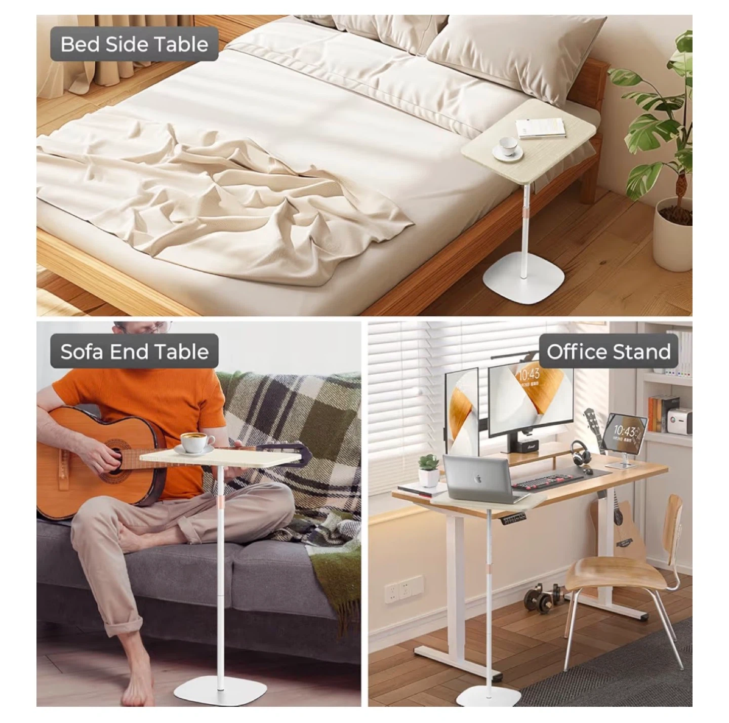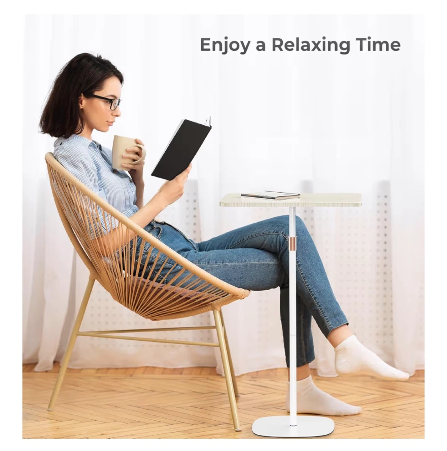 This standing desk easily adjusts from 18 to 48 inches. It has a weight capacity of 33 lbs and includes a security pin to lock the height in place. Useful for comfortable working or relaxed reading.