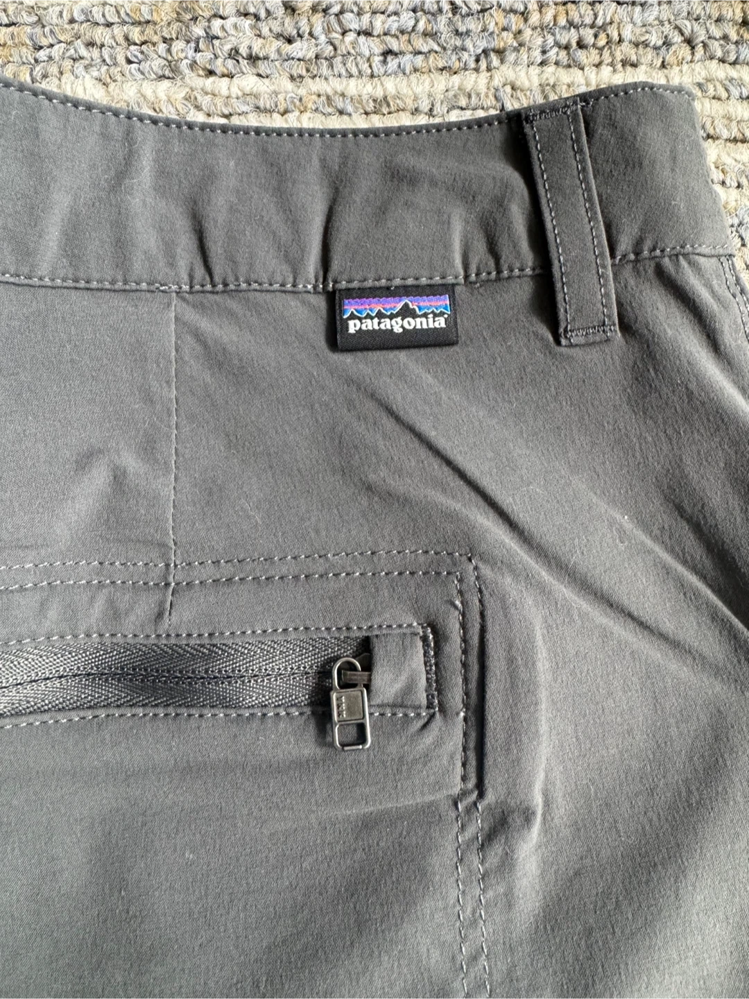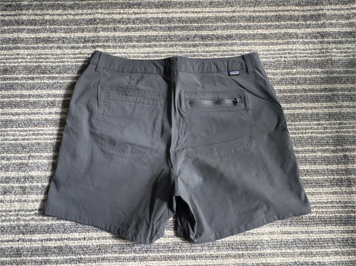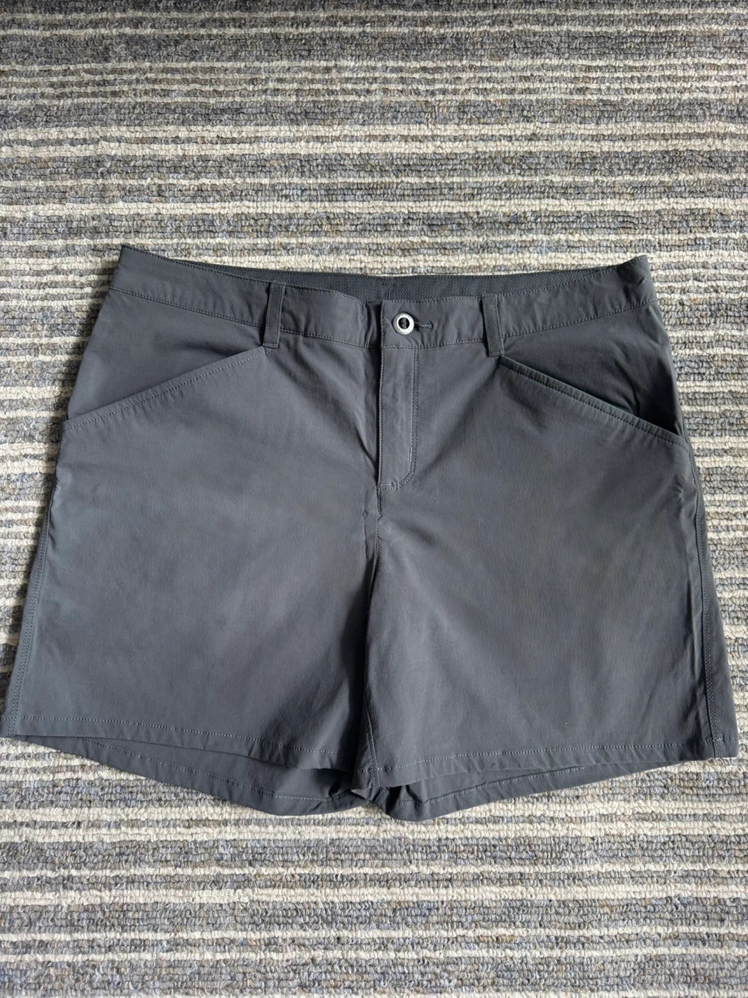 These Patagonia Women's Quandary shorts are size 12 in Forge Grey. They're made with durable, quick-drying fabric, perfect for outdoor adventures or casual wear. Features include a zippered pocket for secure storage.