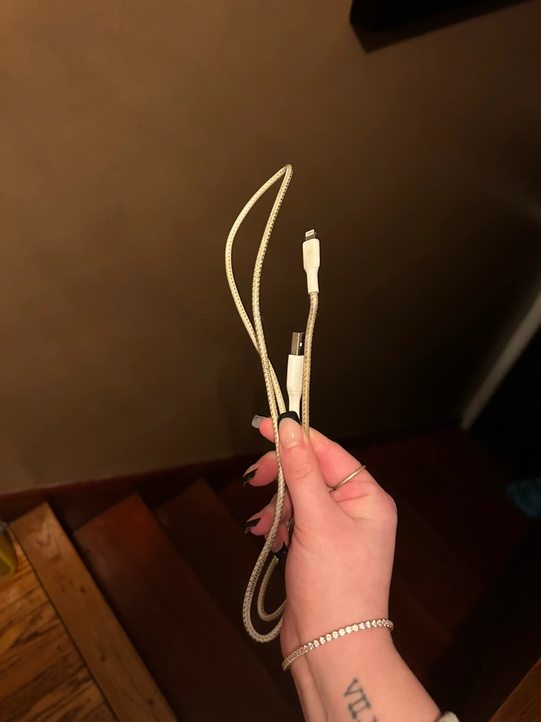 This is a braided charging cable with a Lightning connector. It's designed for Apple devices. The braided exterior helps prevent tangles. #freecycle