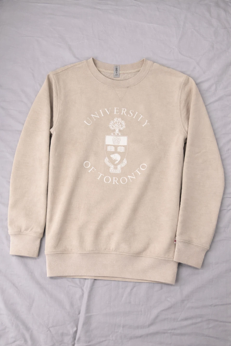 This beige unisex crewneck sweatshirt features the University of Toronto crest. It's a great way to show your school spirit! Worn only a few times. 60% cotton.