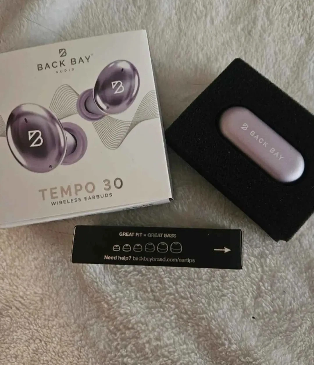 Selling a pair of brand new Back Bay Audio Tempo 30 wireless earbuds! They come with the original box and different size eartips for a great fit. Enjoy great bass and a comfortable listening experience with these earbuds